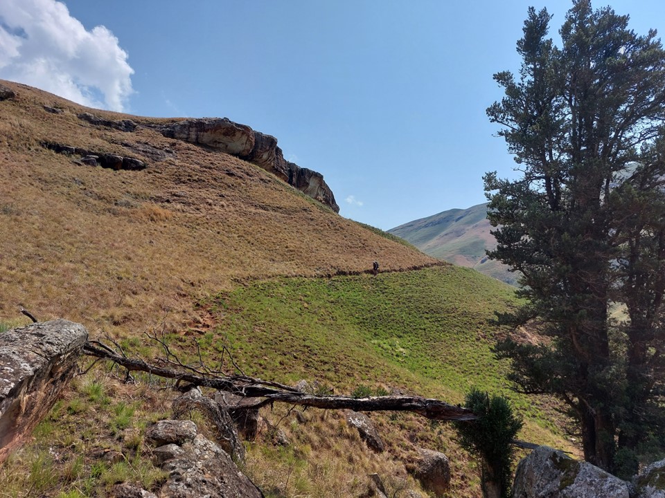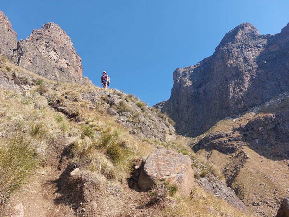 I always forget how far it is from Judge Pass to Upper Injisuthi Cave. That ascent from the river to the saddle isn’t trivial either, with over 350m elevation gain. By the time we started the ascent, my lack of Drakensberg hiking in recent times was definitely showing and my pace became very slow.