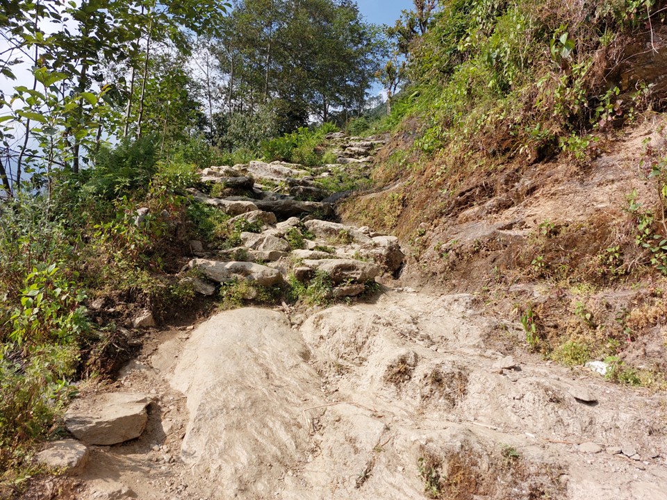 One aspect of hiking in Nepal is the amount of erosion one sees. It is well documented that landslides are a regular occurrence here – but it is one thing to read this in a book, and another to consistently see banks that have recently collapsed. It is also a bit unnerving to walk under banks like this that have collapsed. A hiker was killed in the Everest Region in October 2022 in a landslide, not to mention that many locals die to this each year.