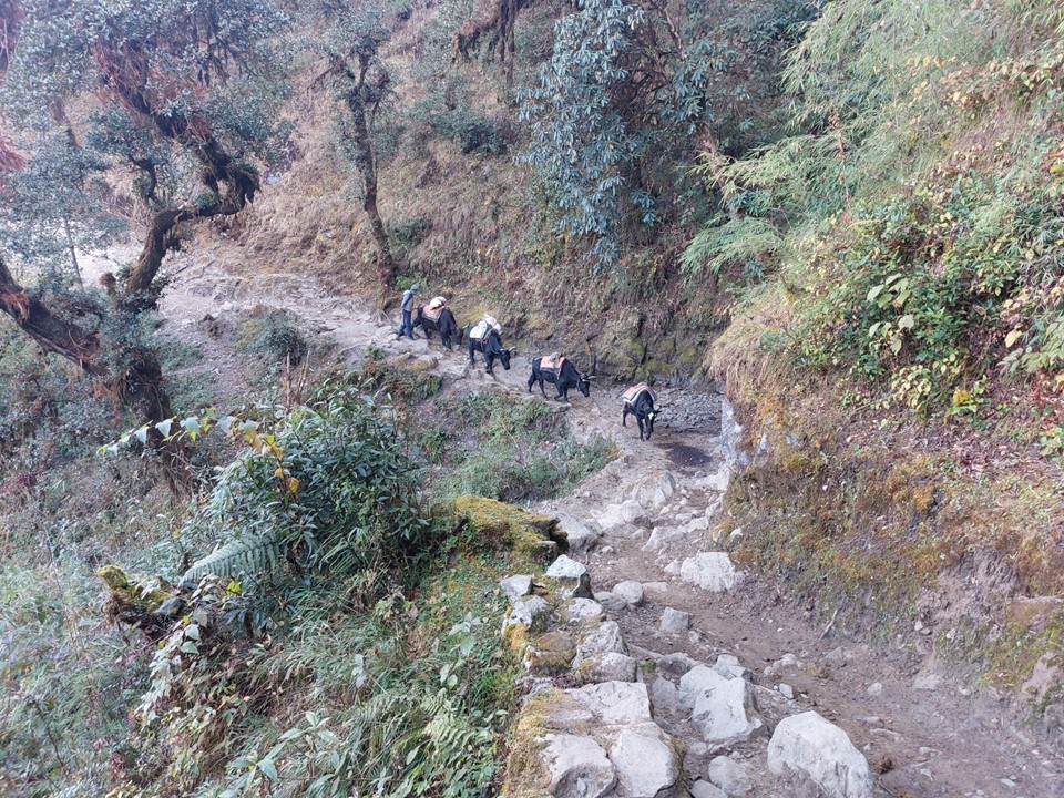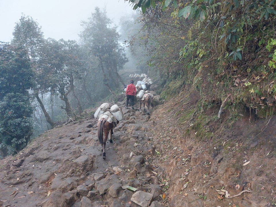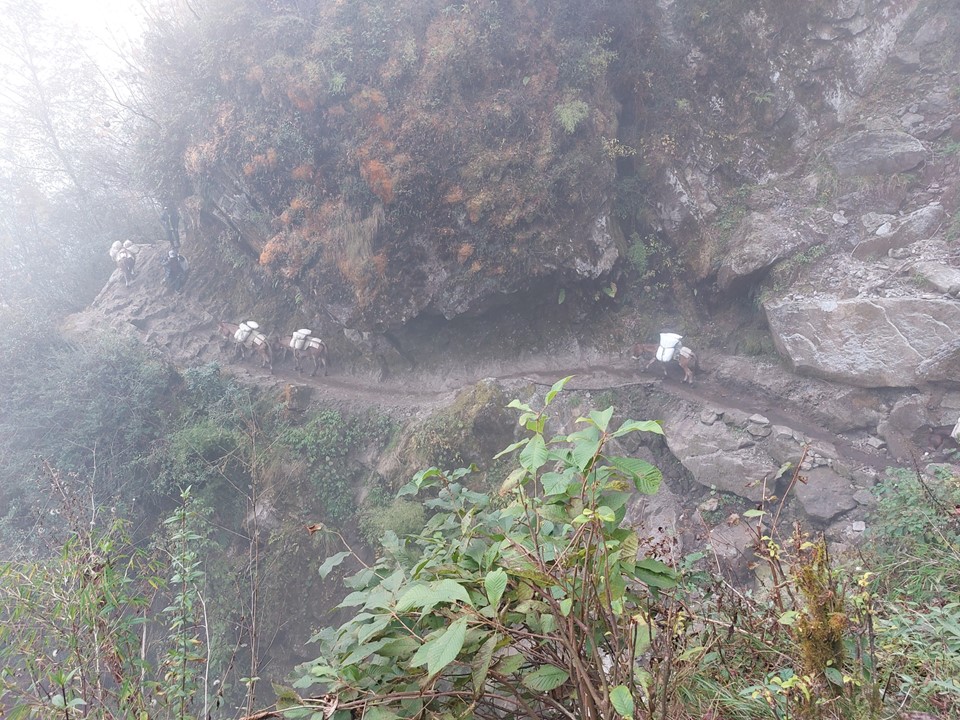 There is a warning that this section from the dropoff point to Paiya is very slippery – and as it turns out the reason for this is that its covered in animal droppings. I very quickly found myself caught behind a train of mules, and would be stuck behind this for over an hour.