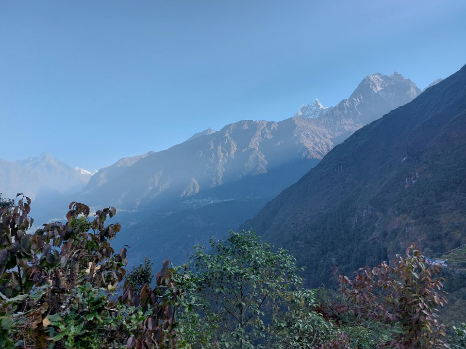 The next morning I could see a really impressive mountain in the distance. I looked at my map and noted it was Numbur, 6958m, making it the highest mountain I had ever seen to that point. It’s funny – it is 3m lower than Aconcagua, meaning it is higher than the highest point of five of the continents, and only 3m lower than the highest point in South America – but in Nepal it isn’t even in the top 20 highest mountains in the country!