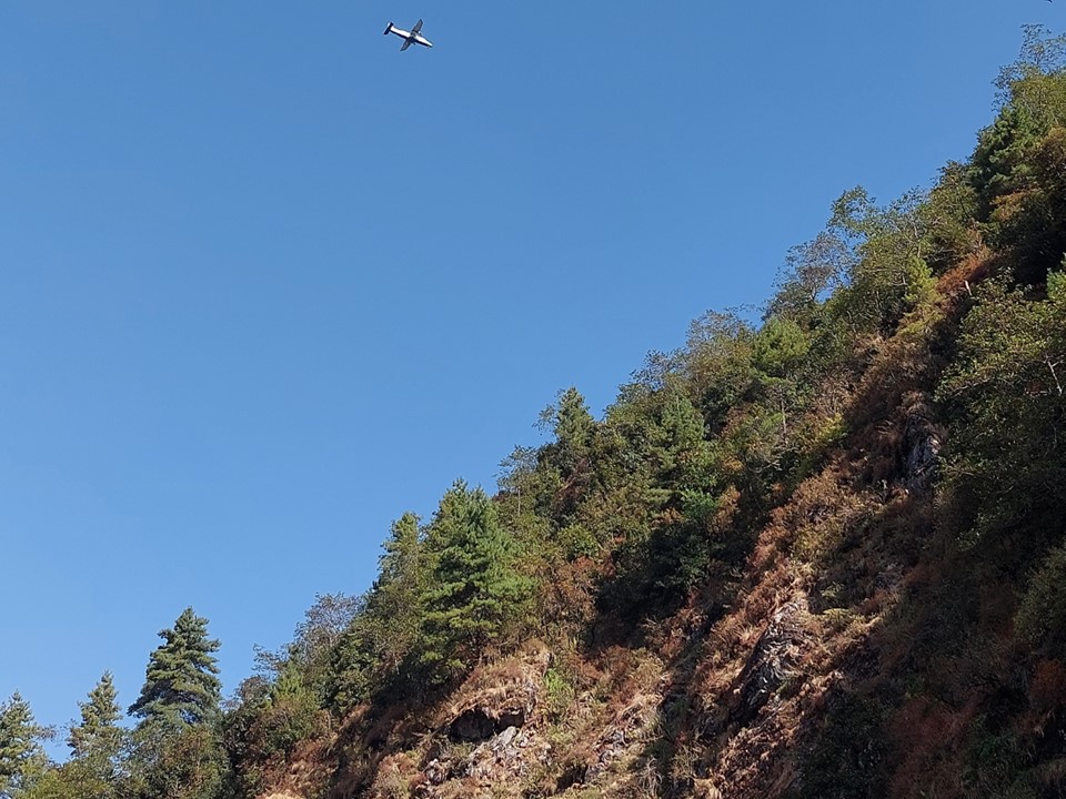 I soon found that the aircraft coming in were basically overhead, and thus knew I would be passing under Lukla soon. Lukla is placed high on the mountain, so approaching from Paiya you don’t actually go through the town.