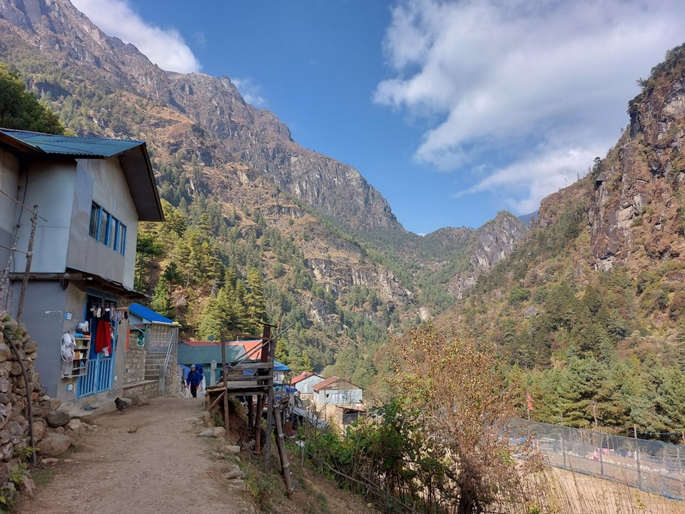 At Monjo you finally reach the gate of the park. This is where you pay your second permit fee. The permits are NR5000 (R700/$40) in total as at November 2022. Entering the park is another dramatic change – the number of tea houses decrease and the scenery starts to really pick up!