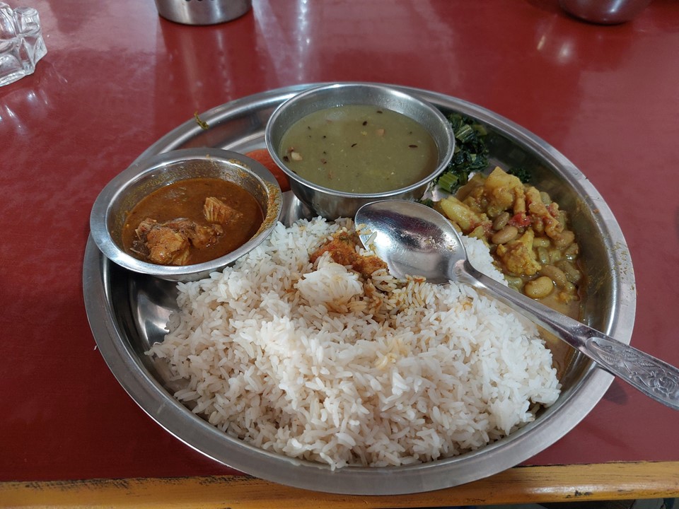 We stopped for lunch at a tea house on the Sunkoshi River. This was my first time trying Dal Bhat, and was probably the worst Dal Bhat I had on the trip. Dal Bhat is a a meal of lentil soup and rice with veggies. You are given unlimited refills of rice and lentil soup, and as I would learn much later (and wish I knew at the start), not finishing all your rice is very rude.