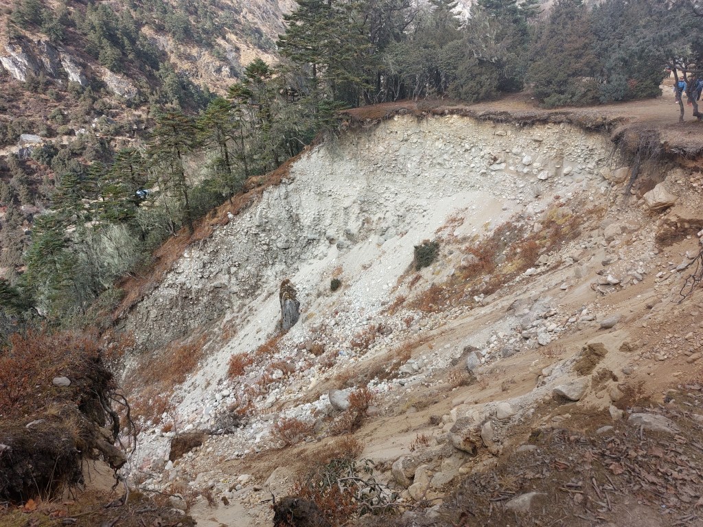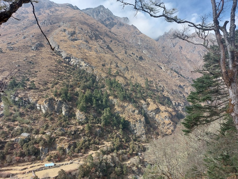 As I climbed the hill, I suddenly had a sharp stinging pain in my one calf. I was trying to figure out what happened, when I eventually pulled the leg of my pants up to see, a bee had got caught in my pants and had stung me. Having only been stung by a bee once in my life, despite frequently encountering bees, I had to laugh at the irony. Of all places to be stung by a bee – 3800m in elevation in Nepal would not have been a likely guess. I found a rock with a straight edge and removed the stinger, before continuing on.