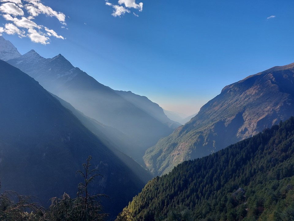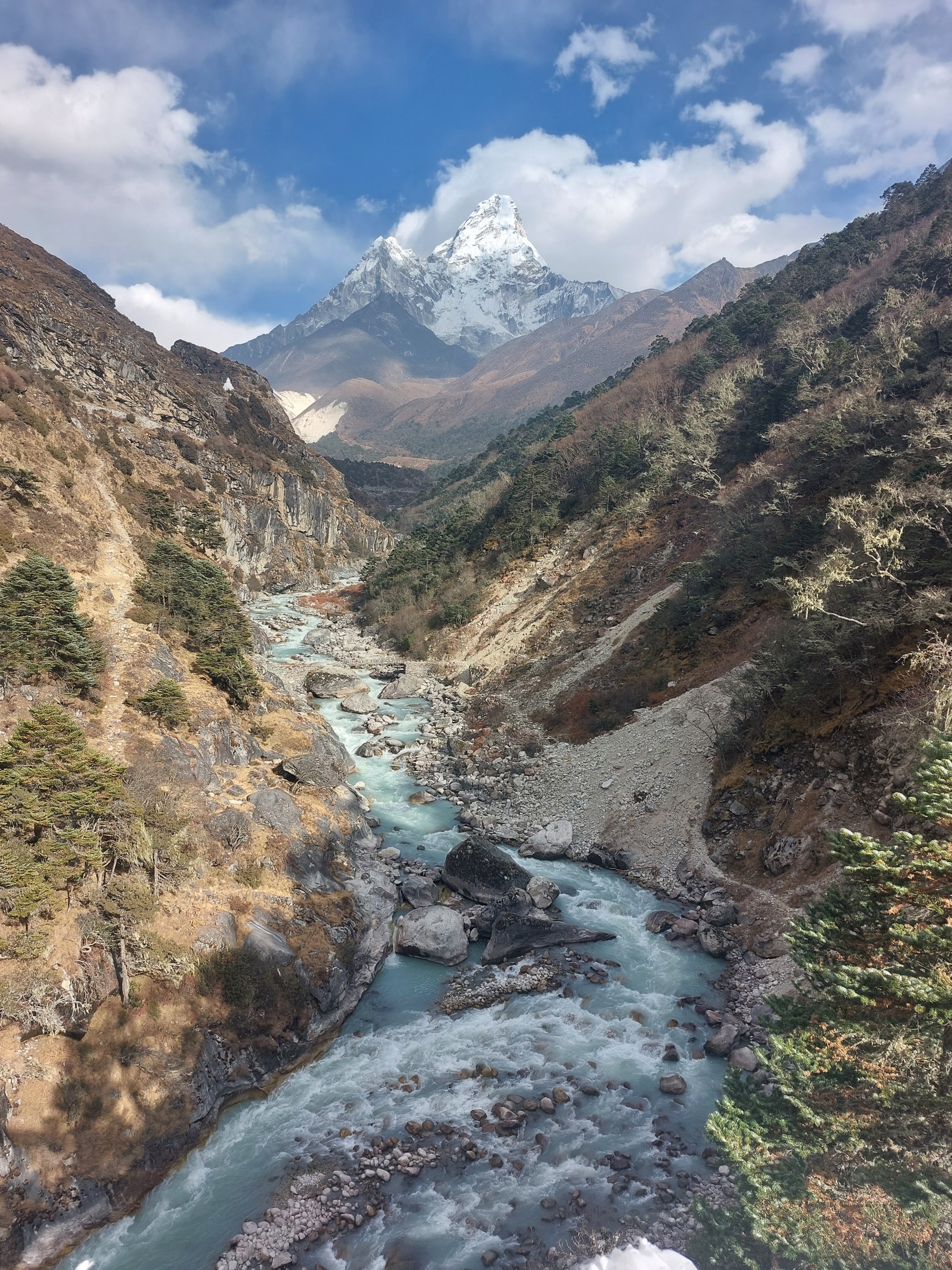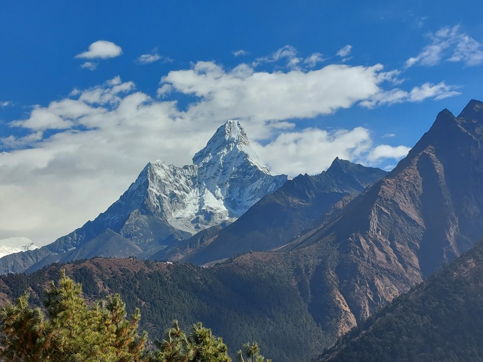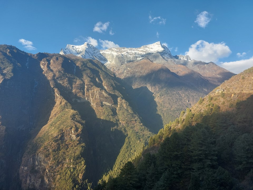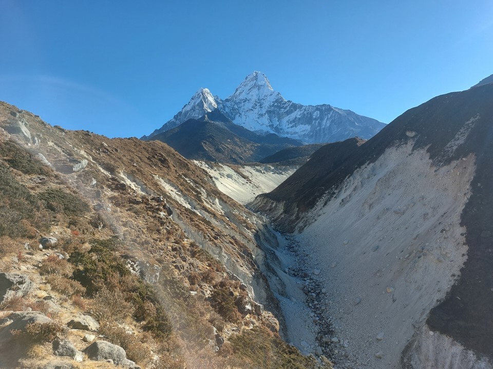 I woke up and took a look out my window. Kongde Ri was calmly waiting on the other side of the glass, across a deep valley. The scale of these mountains takes some getting used to! The usual first view of Everest had not provided a view the previous day, but I knew I would soon be reaching the second view of Everest and the first view of the mountain I was here to see more than any other – Ama Dablam, so this would be a big day!