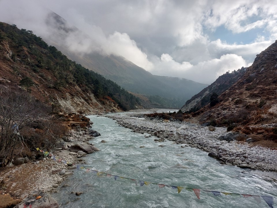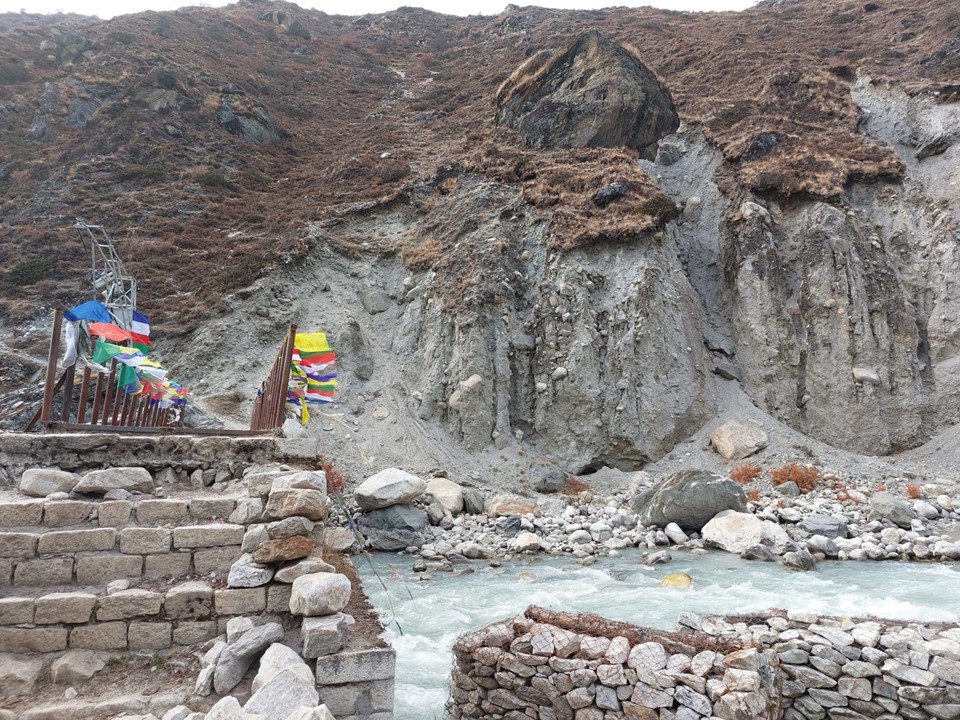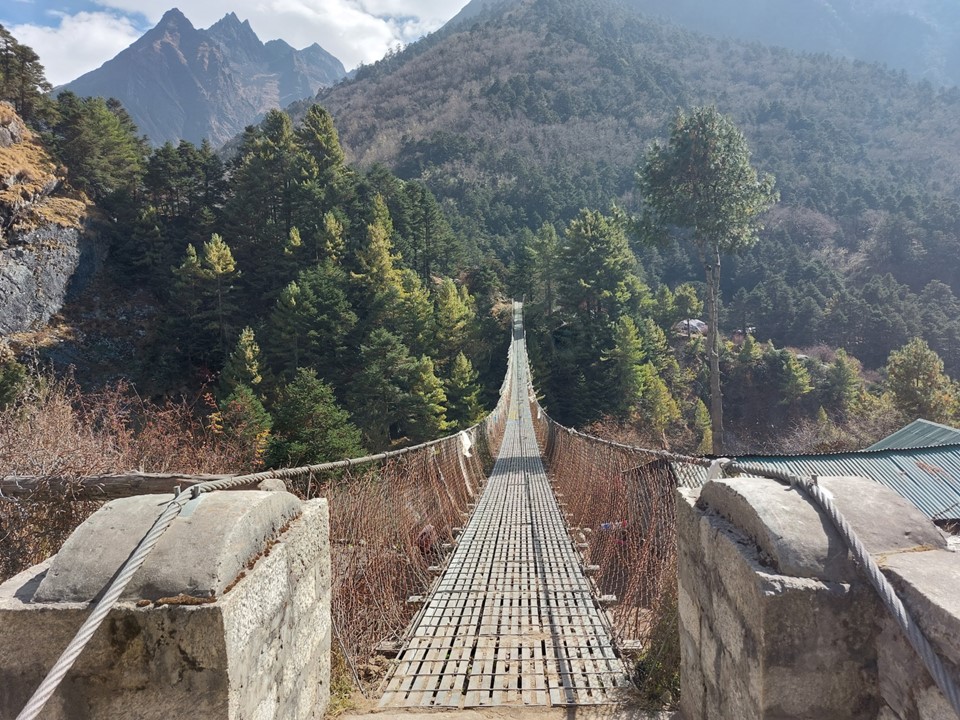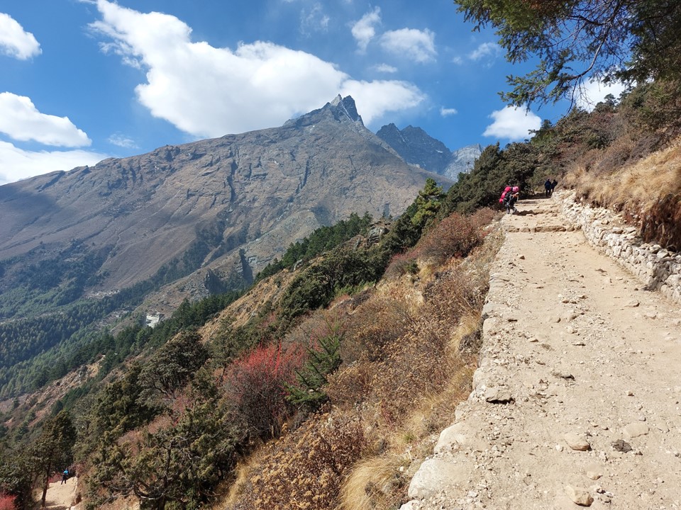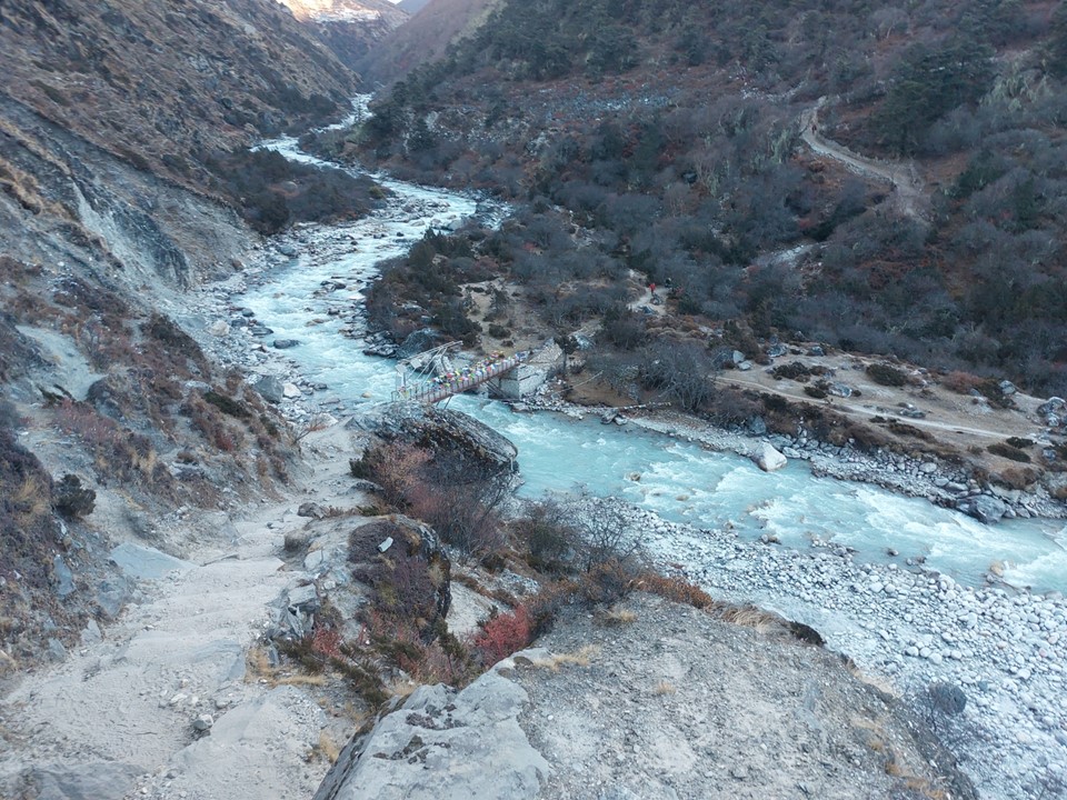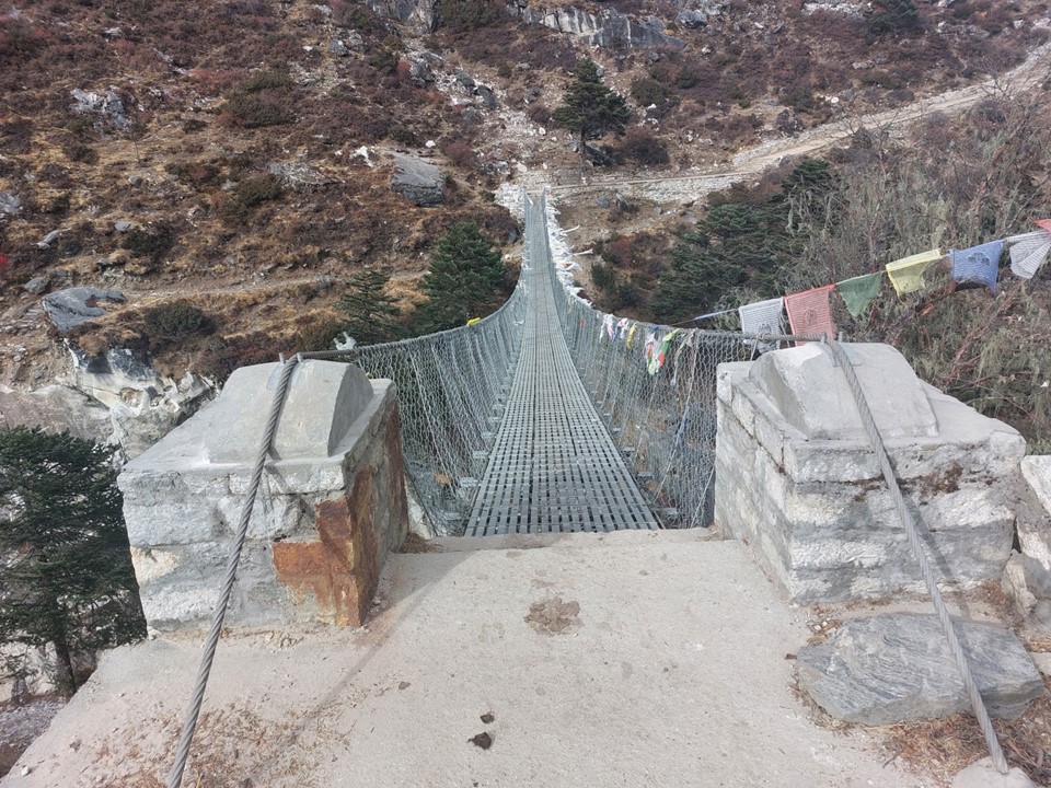 After initially missing the unmarked turnoff, I walked back and found the way past the houses at the far end of the town and dropped to the bridge over the river. I didn’t expect many people to be doing this side quest, but being the Everest Region, wasn’t surprised to see others. A group of 20 Poles was also doing this hike, which meant I would have others around – which is always nice.