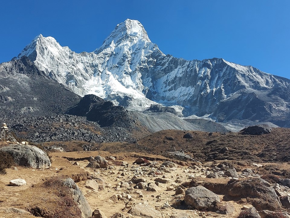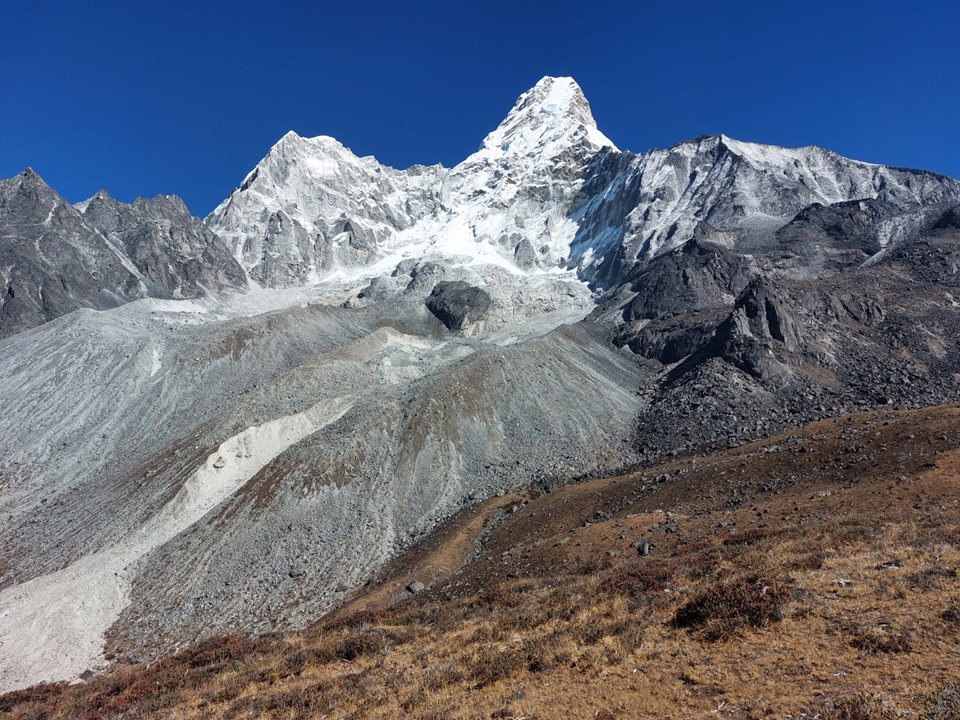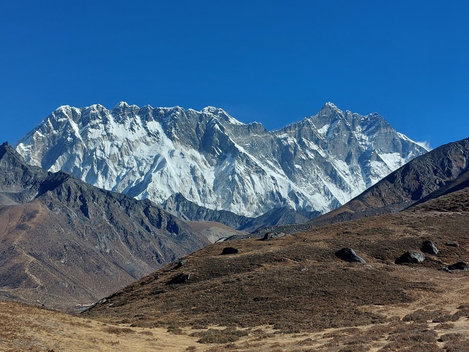 Early the next morning I set off for Ama Dablam Basecamp. The cloud had cleared and Lhotse, the fourth highest mountain on earth, was right there in all its glory. A certain 8849m mountain was just sticking its head over the top as well – it was great to finally see the Big-E, albeit not the most impressive view of it!