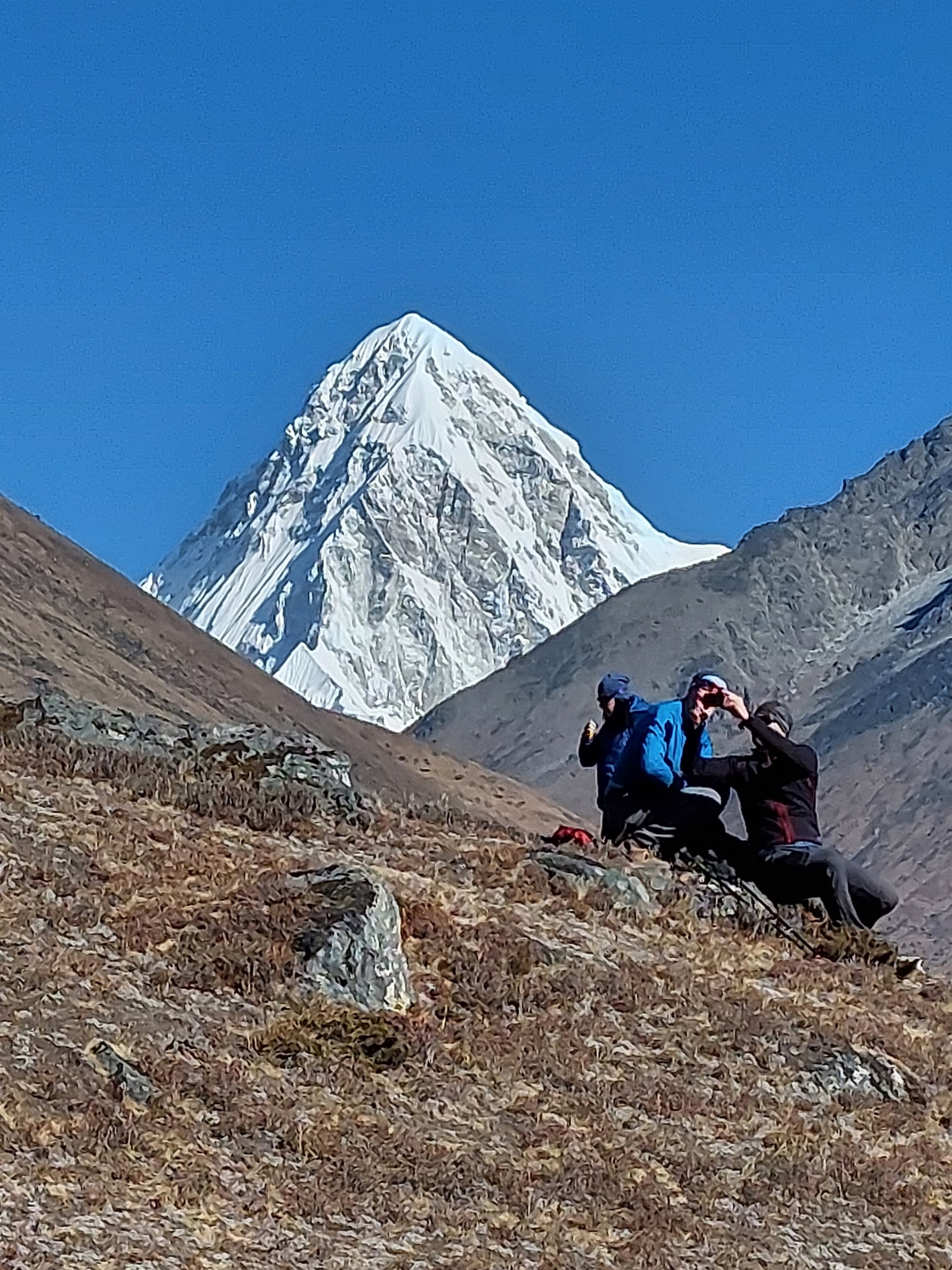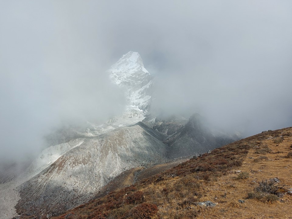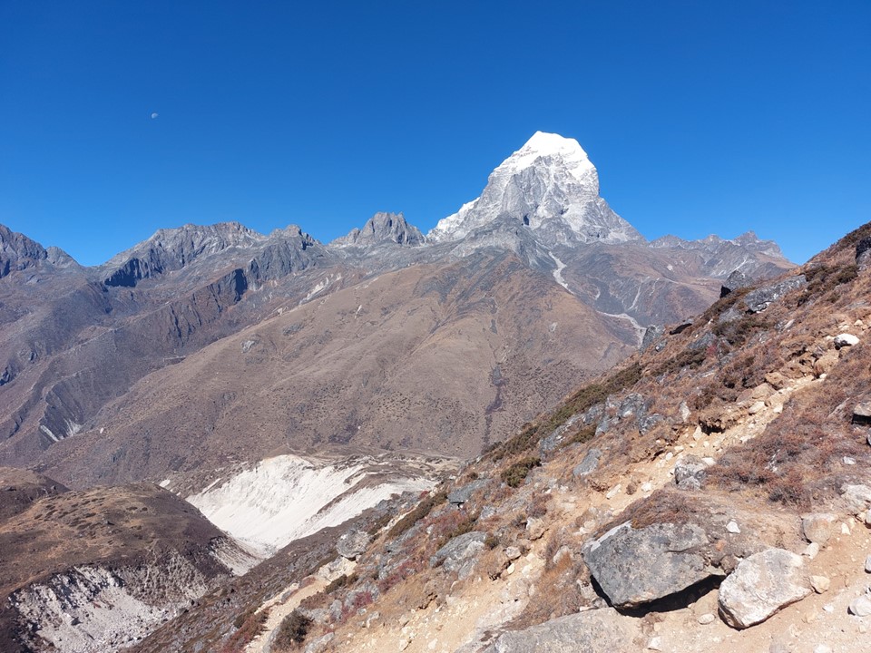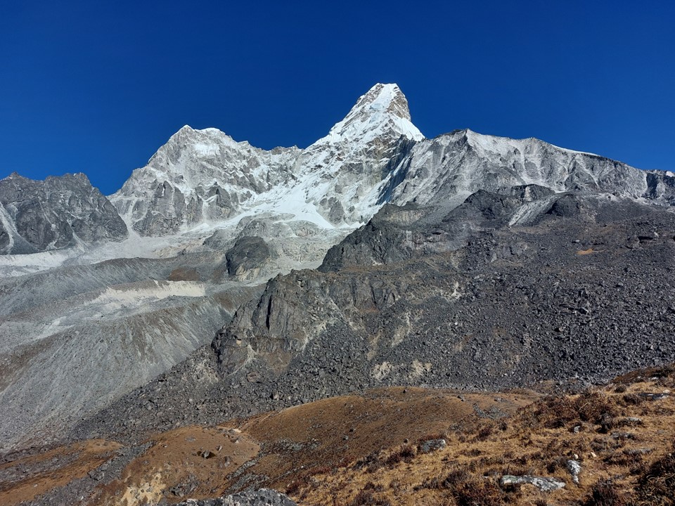 Soon a large conical peak became visible in the distance. I was initially uncertain what it was, till the Polish guide said it was Pumo Ri. When he said the name, I had to chuckle – its a peak I have read about many times, I really should have known! It is commonly mistaken for Everest (despite looking completely different) as it is one of the most impressive peaks in the region. The name means “daughter mountain”, presumably referencing Everest being the mother. It is a mountain I would love to climb some day.