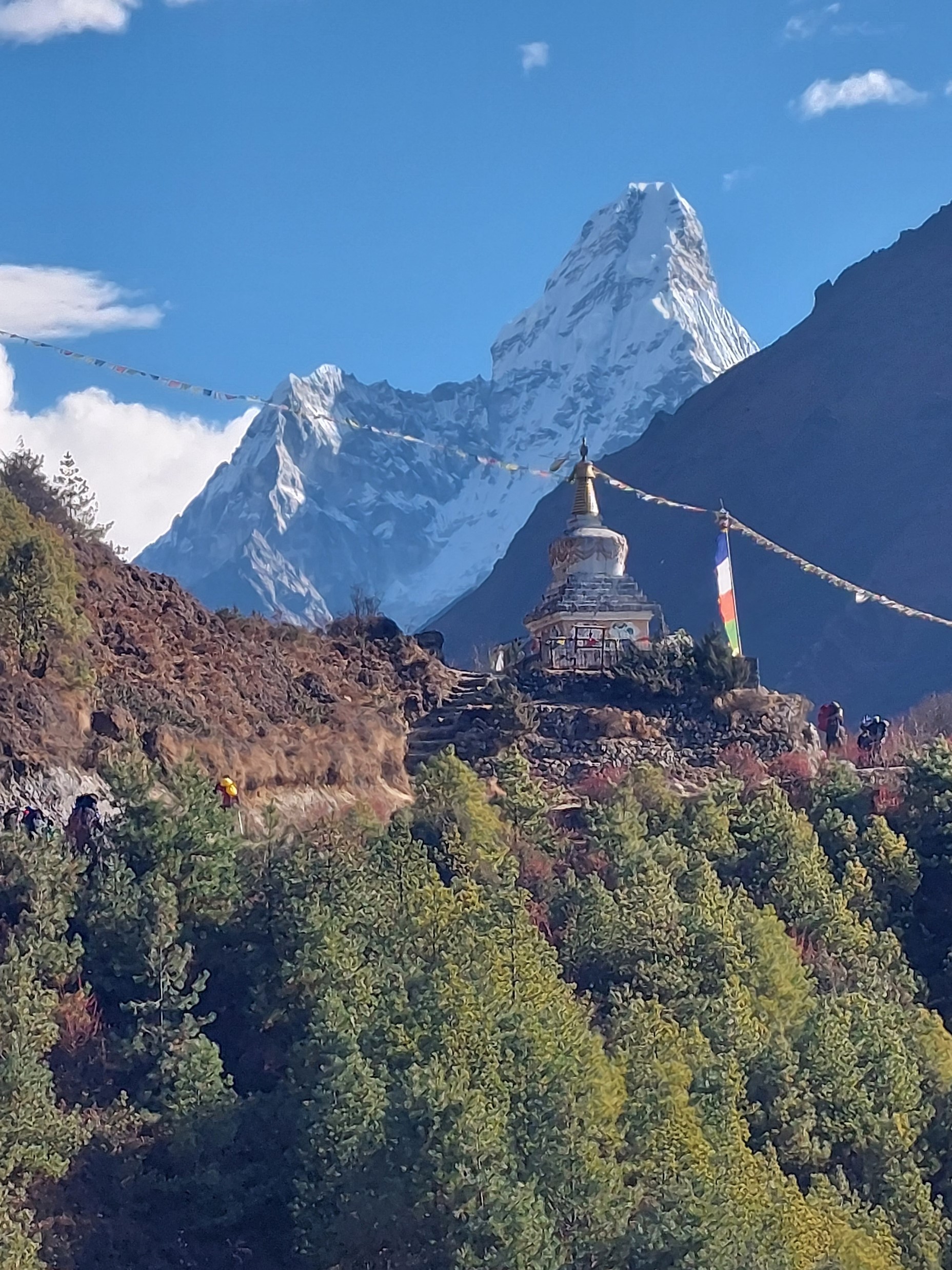 I stopped for some tea in Phunke Tenga. At some point my plans had included spending a night in this town, but the extra distance covered by vehicle on day one rendered this unnecessary. I knew the upcoming hill was a big one – Tengboche Monastery is famously on top of a big hill with exceptional views. Which meant two things: a difficult ascent; and some rewarding views!