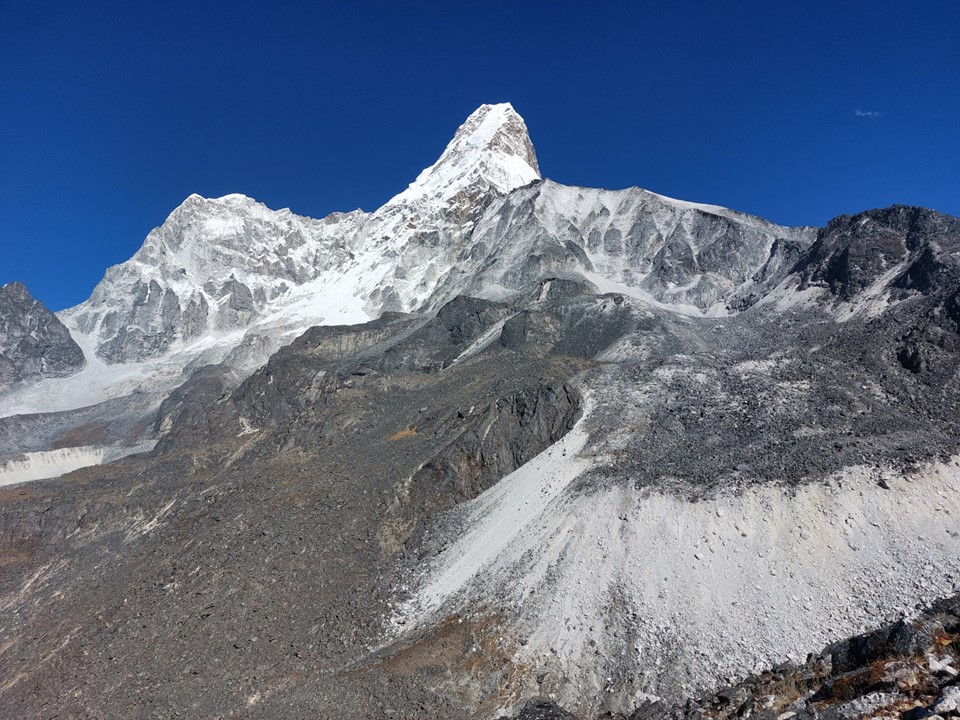 As they say in Tanzania – pole pole. I moved at a pace comparable to a snail in peanut butter, and stopped regularly. I knew I could get down to Pangboche reasonably quickly, so I was in no rush. Also – how many times in my life will I get this view, I was in no rush to leave.