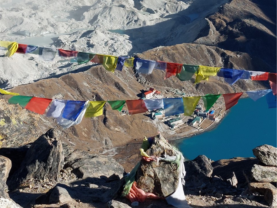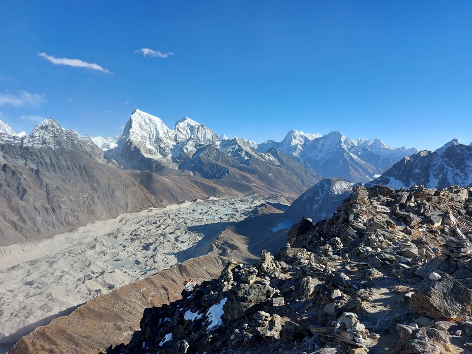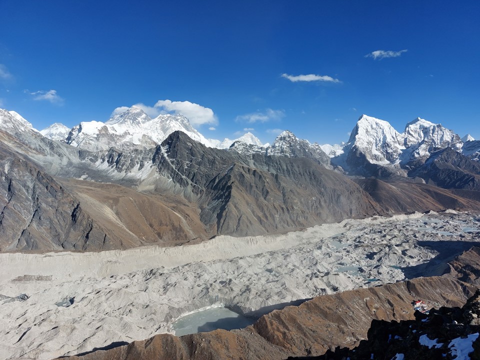 With over 600m elevation gain, getting up Gokyo Ri was no joke – but by just pacing it well, I actually got up faster than anticipated. I didn’t carry my pack up on this occasion – for the other summits I ascended with my pack, but with most of the contents of it left in my room. On this occasion, I went up with a dry-bag containing a down jacket, a raincoat and my light gloves, plus some snacks and water.