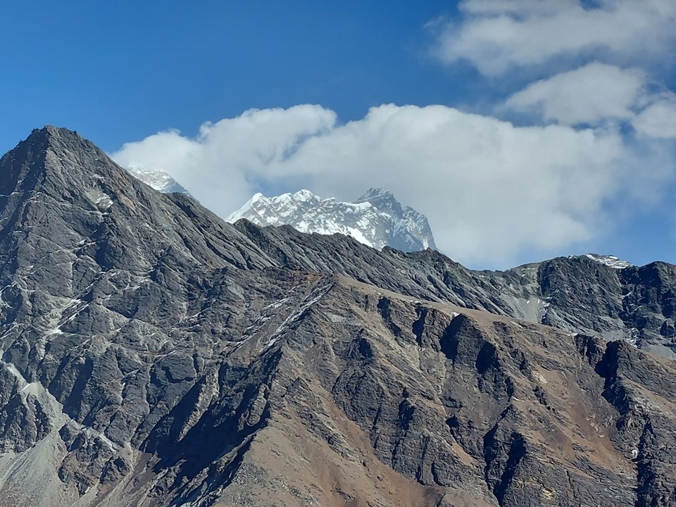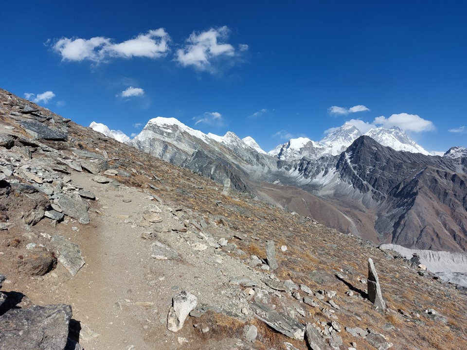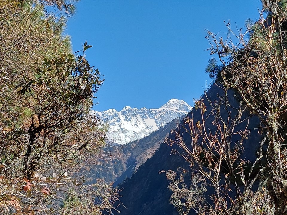 I saw a few people coming down, but no one going up. As I got higher, Everest and Lhotse began to show themselves.