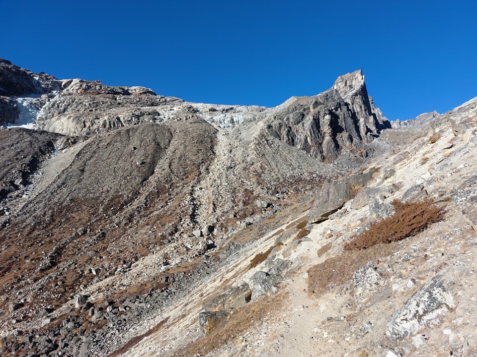 I soon reached the spot usually referred to as the first view of Everest, On the way in it had been hidden, but this morning I could see it clearly. Farewell mighty mountain – you impressed me more than I expected.