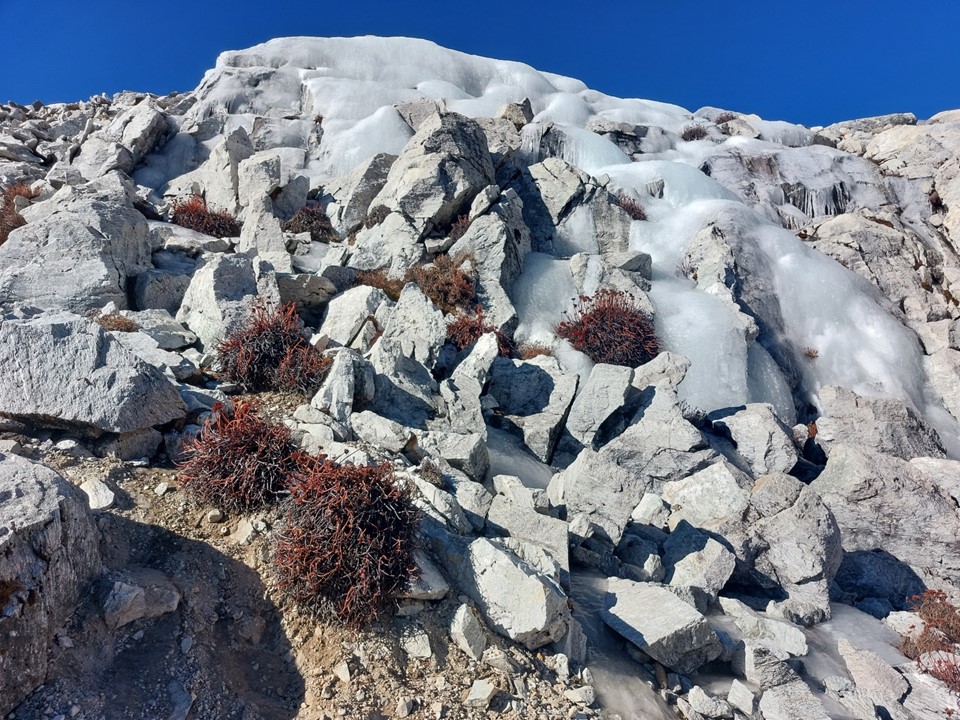 Higher up on the pass I encountered more ice – as is usual above 5000m. I don’t think there are many places on earth above 5000m where ice isn’t found.