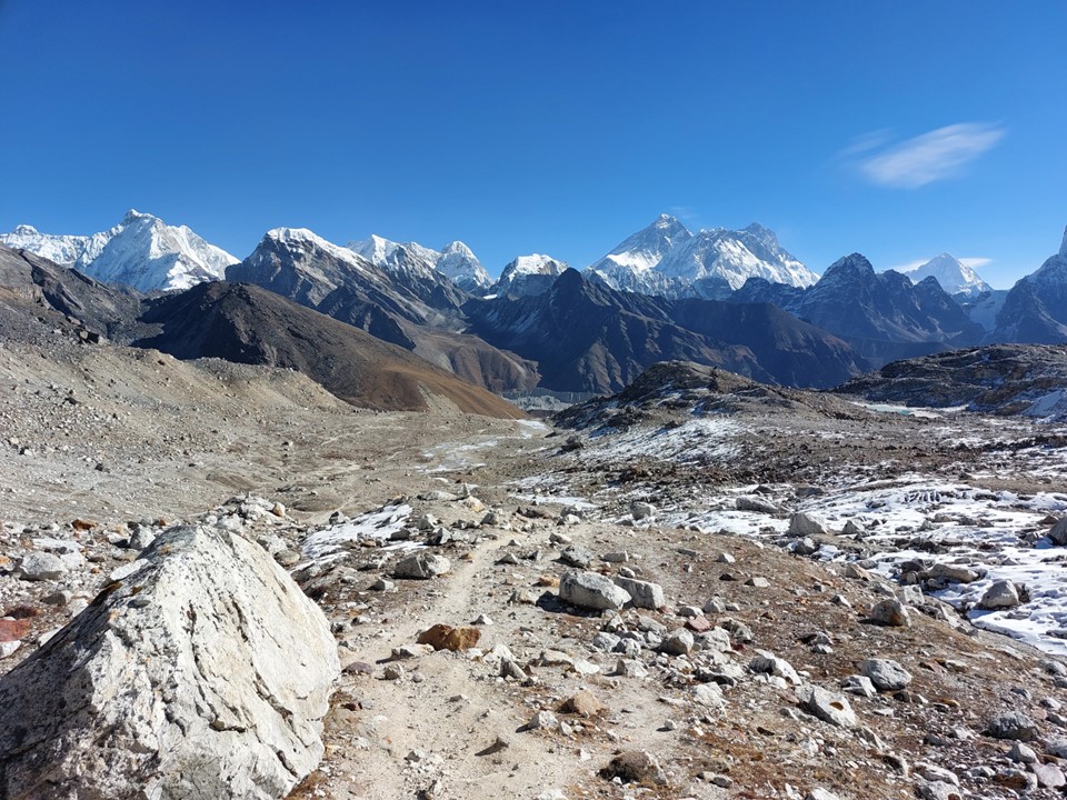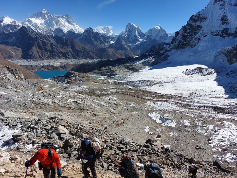 Topping out at “just” 5345m, Renjo La is the lowest of the three passes, but also generally considered the one with the best view. It is difficult to argue with this when Everest is just sitting there in the distance!