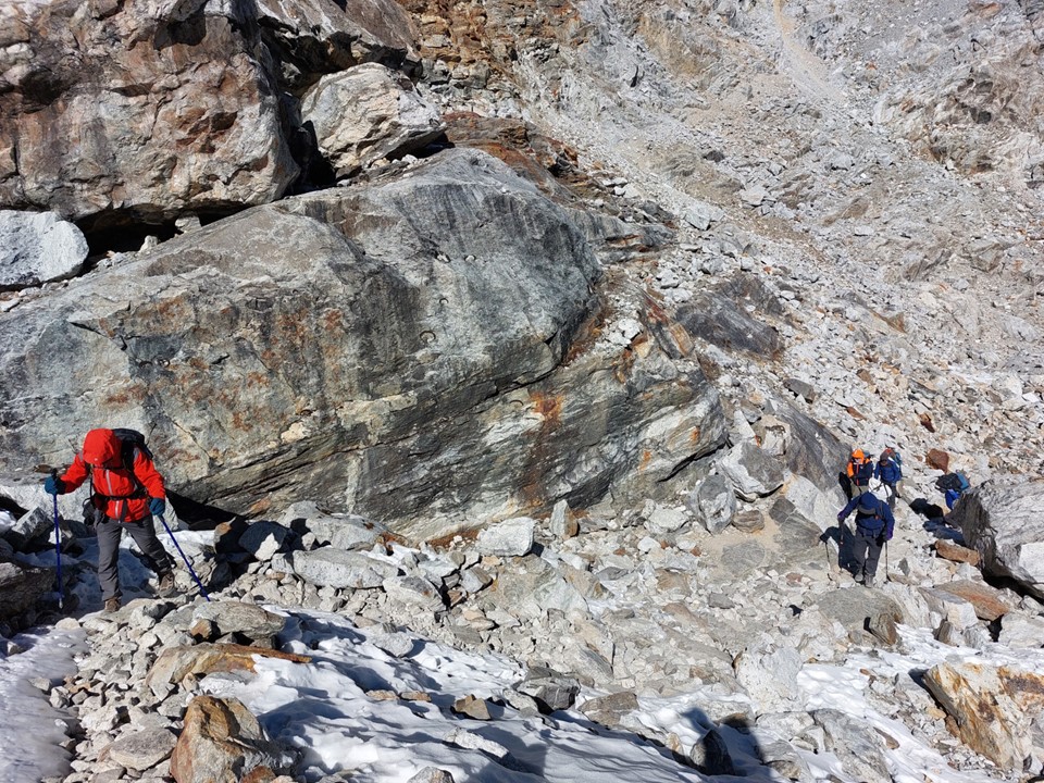 I met an Australian team near the top of the pass. As usual, I wasn’t exceptionally fast on the uphills, but I was faster than many groups. I did the last 100m elevation gain with this group.