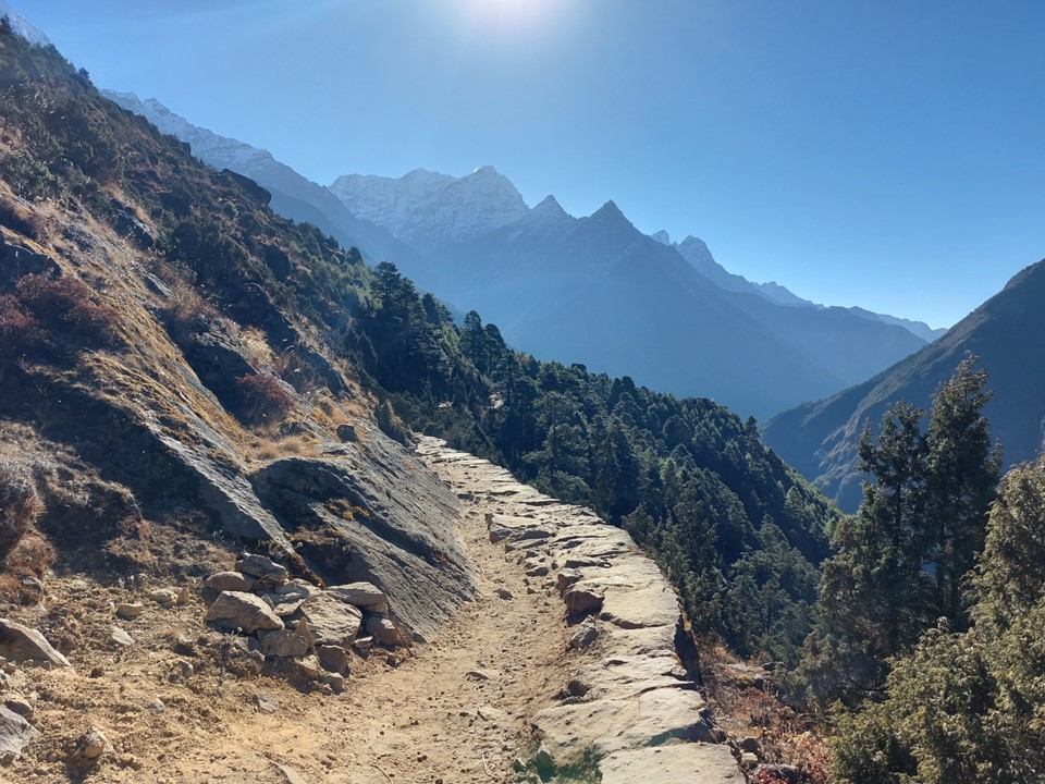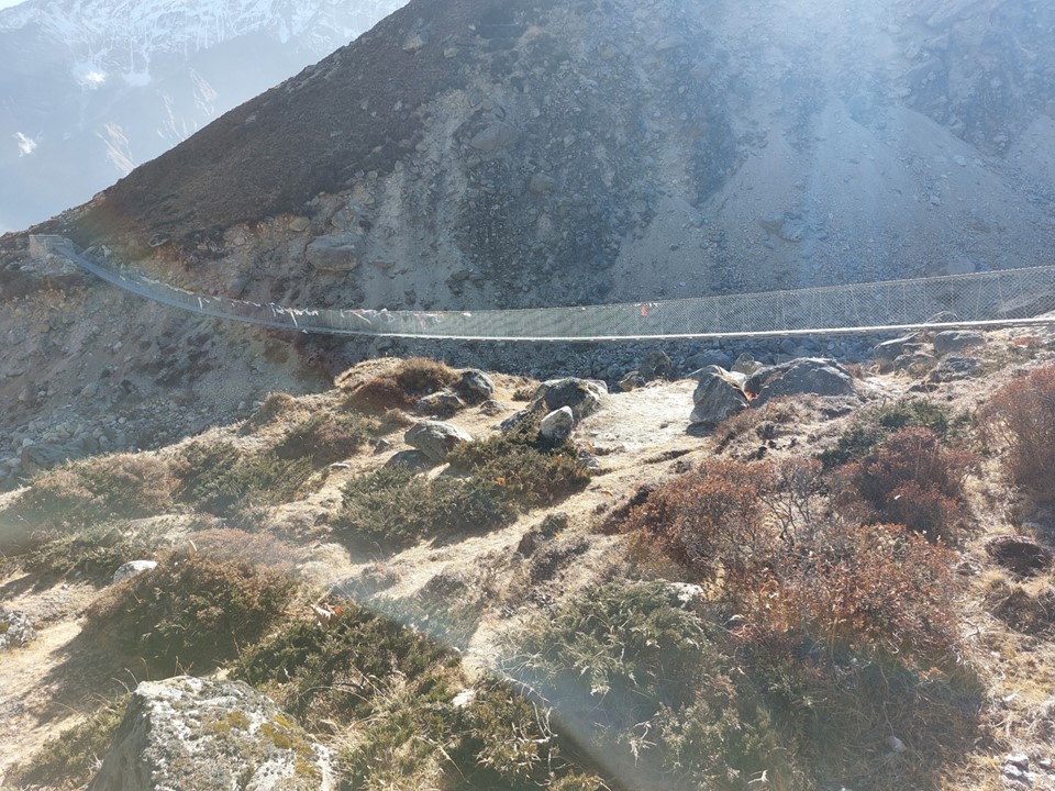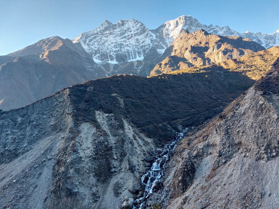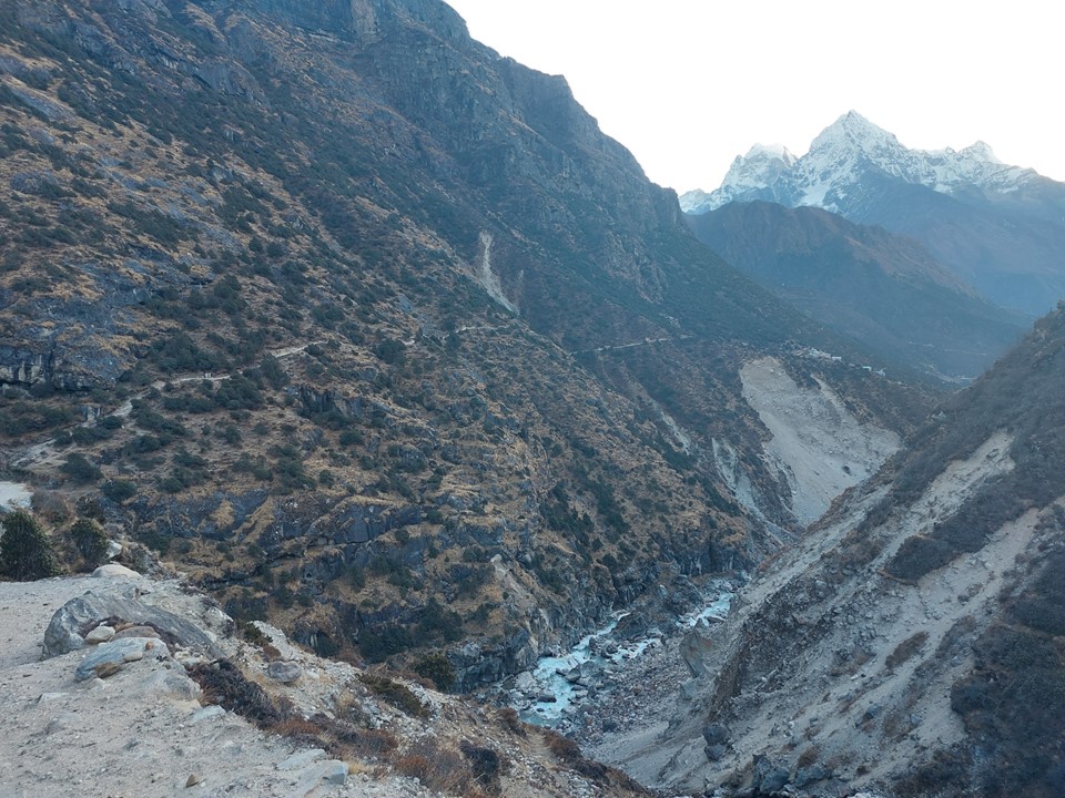 I soon saw a microwave relay tower and knew there was a good chance of getting signal again. I didn’t get it right away, but after about 15 minutes, I had signal for the first time since Kongma La many days ago. I had wifi in Dragnag, but hadn’t been able to communicate for the few days since then. I messaged my family and my running club, as well as posting a whatsapp status for anyone else who may be concerned. It was around 8AM, so it was just after 4AM in South Africa – so naturally no one responded for a while. But you never know how long it will be till you next have signal – unless the town is Namche, in which case you do know. I hadn’t really thought it through at the time, my logic seemed to make sense when I did it.