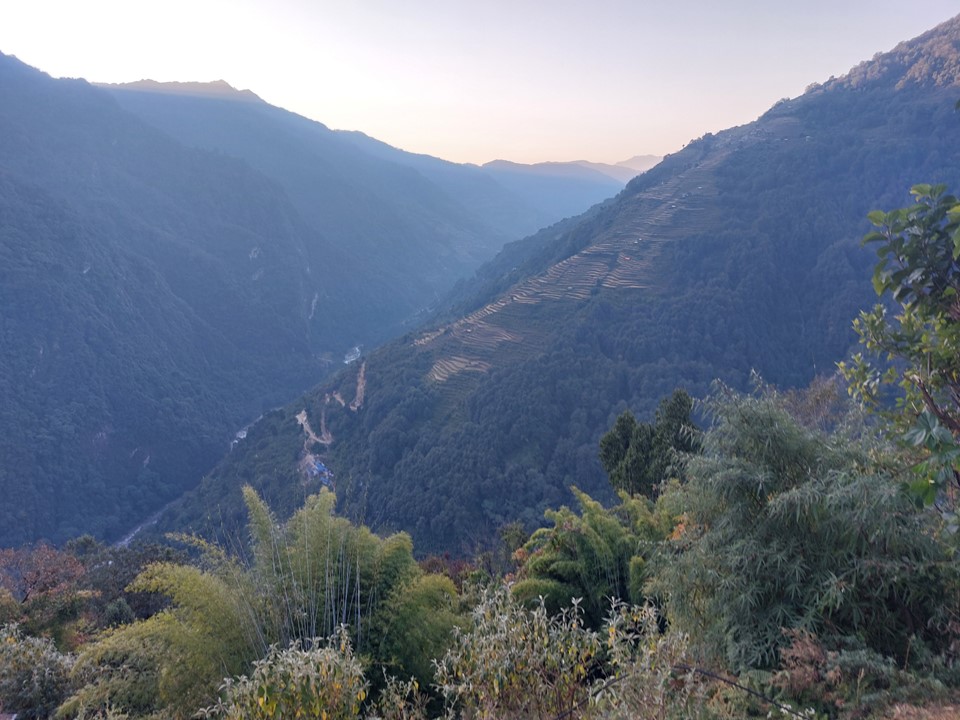 I left the tea house after sunrise, although the sun wouldn’t hit the valley for a while still.