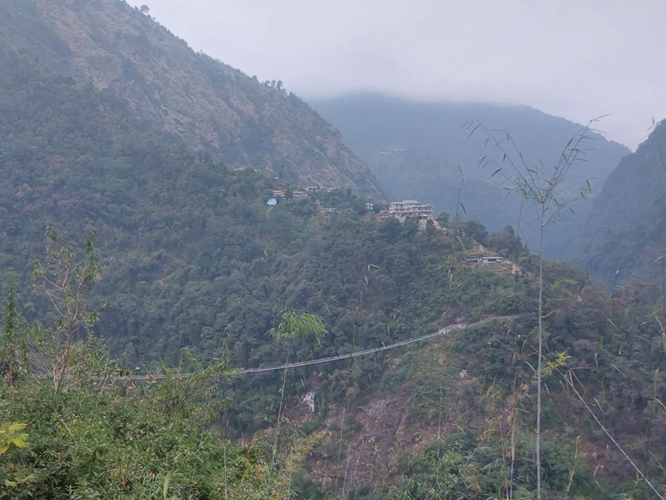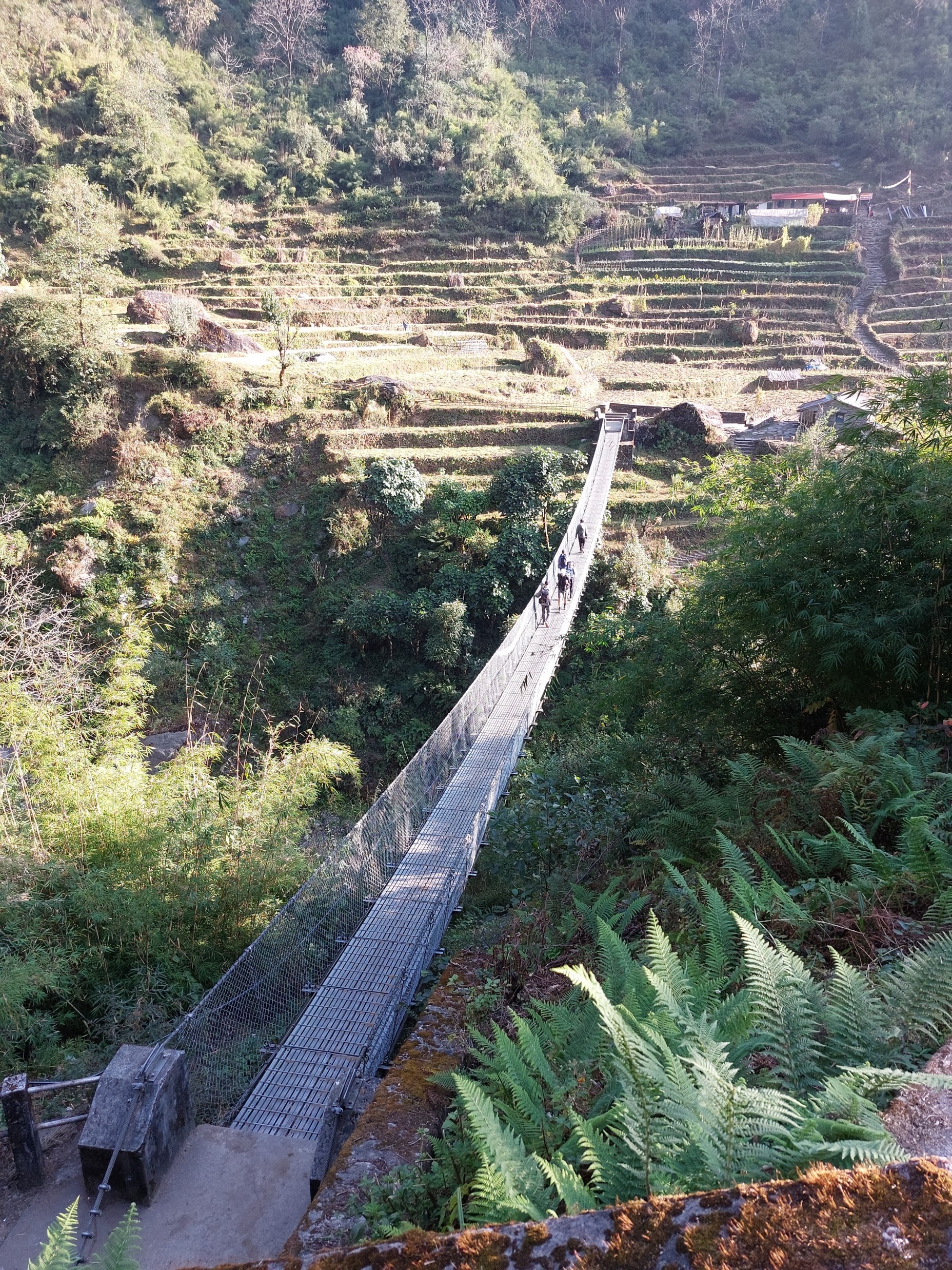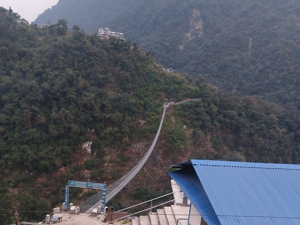 The bridge into the town is by far the longest one I did while in Nepal. It also had the largest drop of any of them – although by now I had done so many that it wasn’t too intimidating.