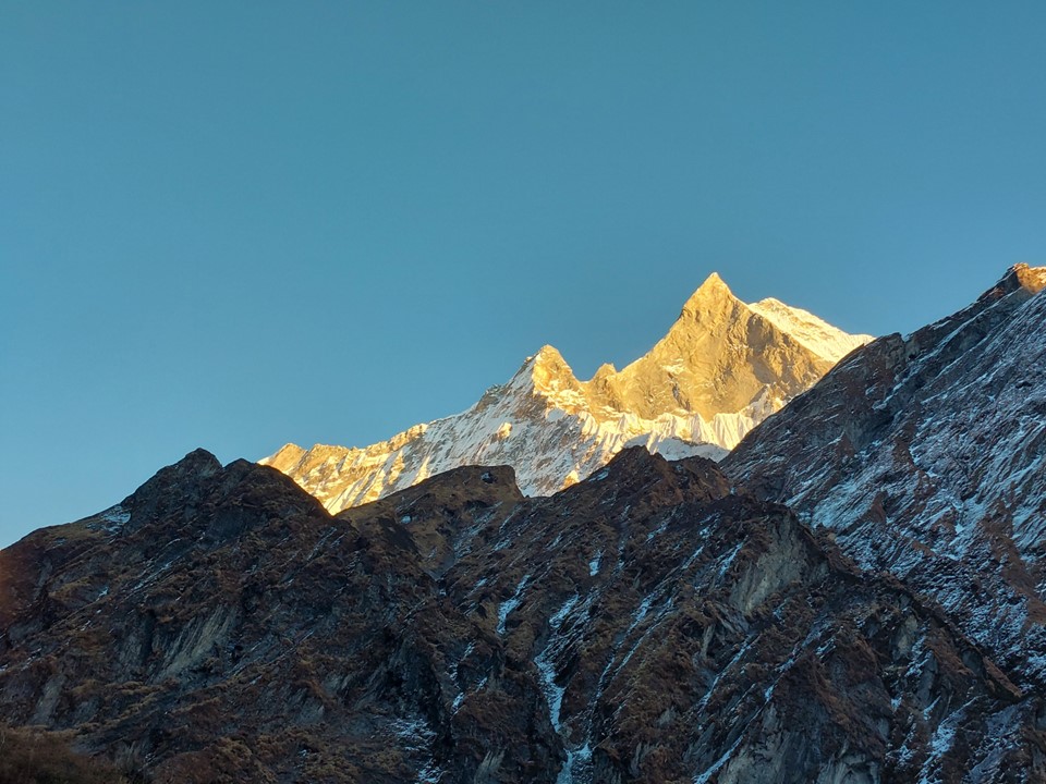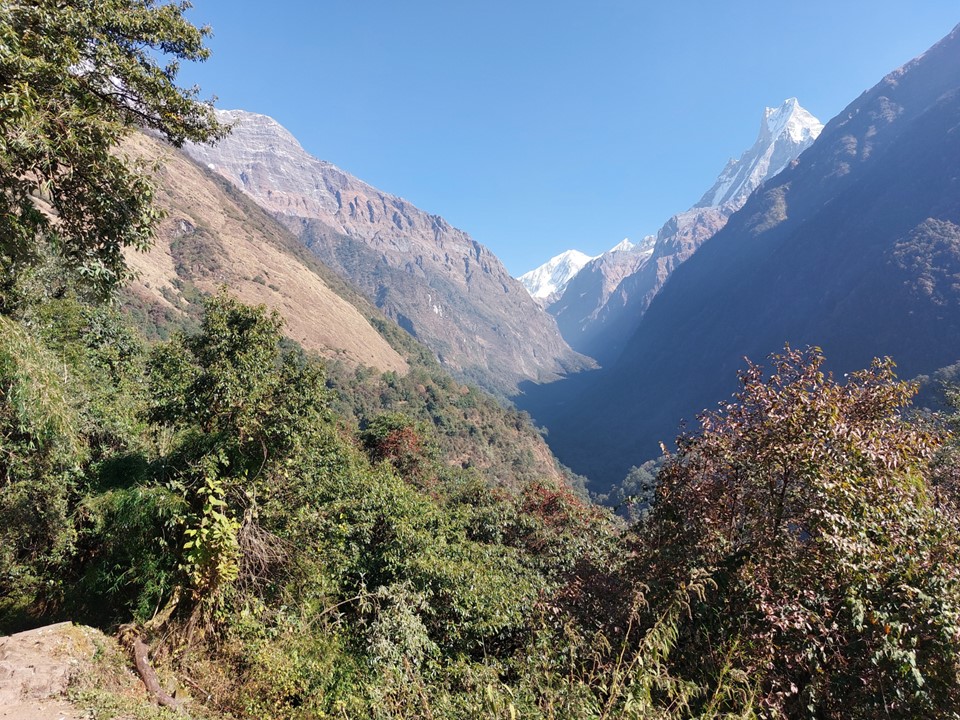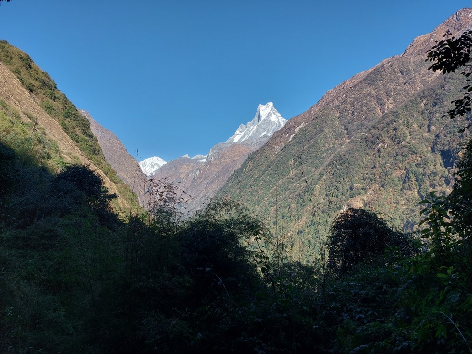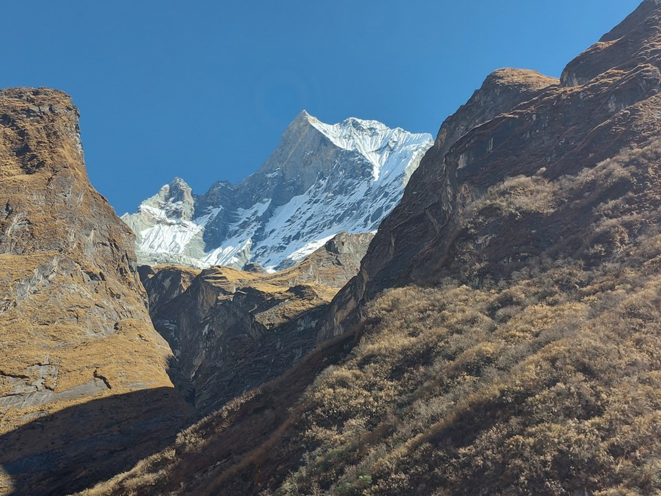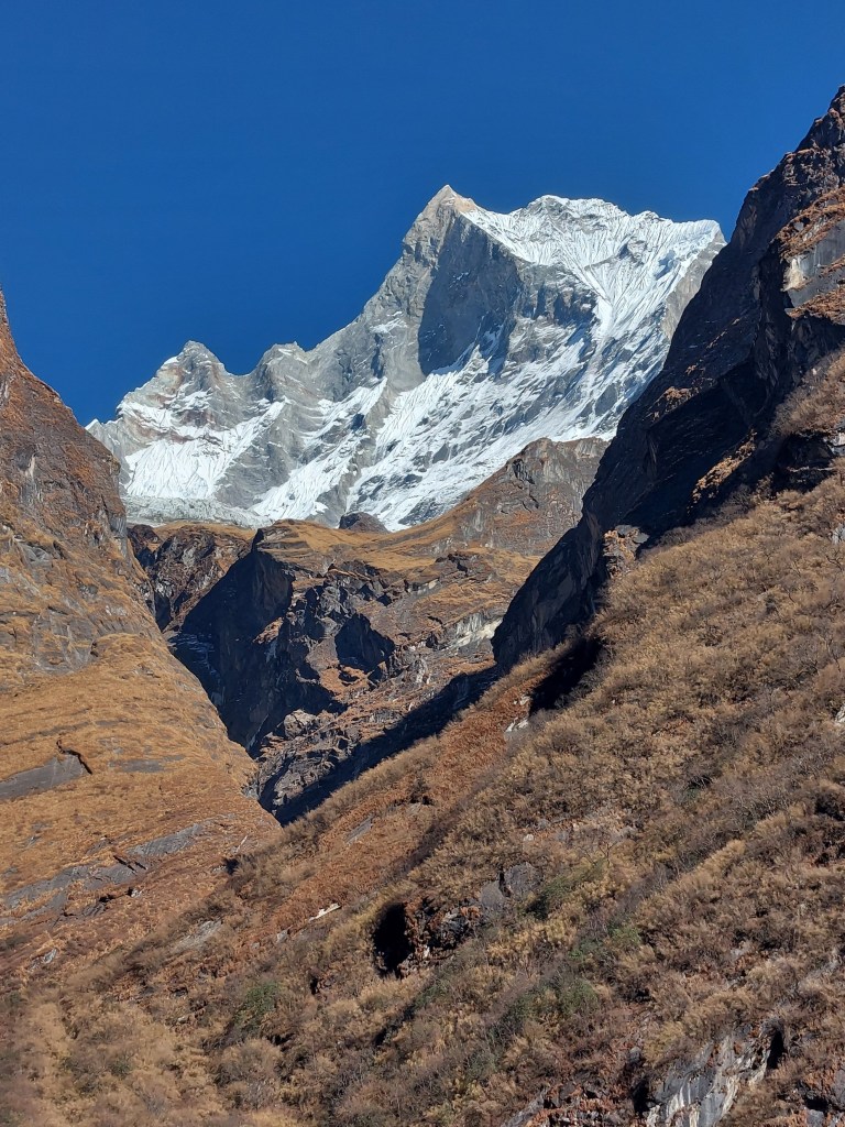 As I got further away, I wish I was able to get some good high zoom shots of the mountain – but sadly my phone was all I had. It would be great to have an A0 canvas print of this mountain on my wall. I did notably get the sun rising over Machhapuchhare printed on an A2 canvas that is now hanging up at home.