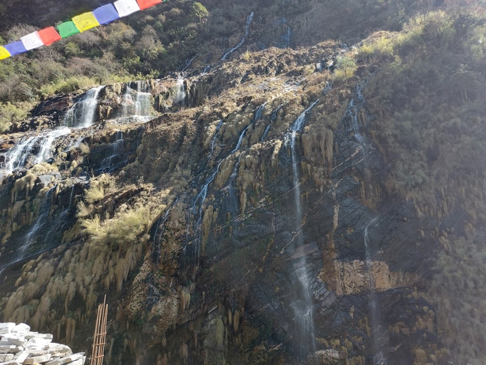 The trail eventually ends up at the level of the river. From here the route becomes less up and down and more simple up. The valley becomes very narrow. Every town you walk into has a sign stating that meat isn’t allowed. The region is considered a temple and thus there are strict rules. No tea house may compete – so all prices are identical once you enter the designated sanctuary as competition isn’t allowed.