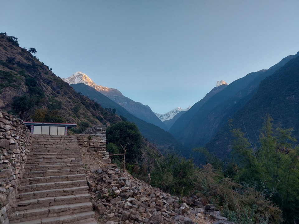 I passed Deurali, the last town before Machhapuchhare Basecamp. I decided I could keep going. Sunset was just under two hours away, and I just needed to keep putting one foot in front of the other and I’d get there. If I had considered that it was more than 500m elevation gain to get there, I might have called Jhinu Danda to Deurali in a day a win – but I decided to push forward.