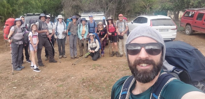 In the morning we were off. Judy, Gaye and Myself met the others just off the main road, and we drove in convoy to the start of the hike. We had a team of 15 that signed up, dropping to 14 by the day of the hike with Steve pulling out. Apparently there had been a waiting list for the hike. Unlike Drakensberg regulations where a group larger than 12 isn’t allowed outside of the Giants Cup Trail, being private land, no such rule applies. The limit was decided by Angela and Roland, the meet leaders.