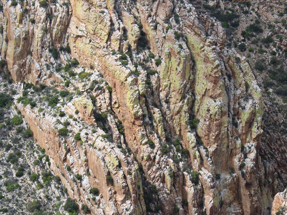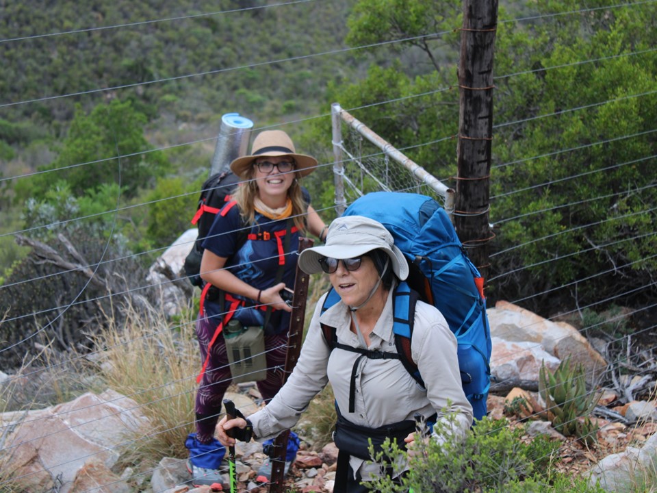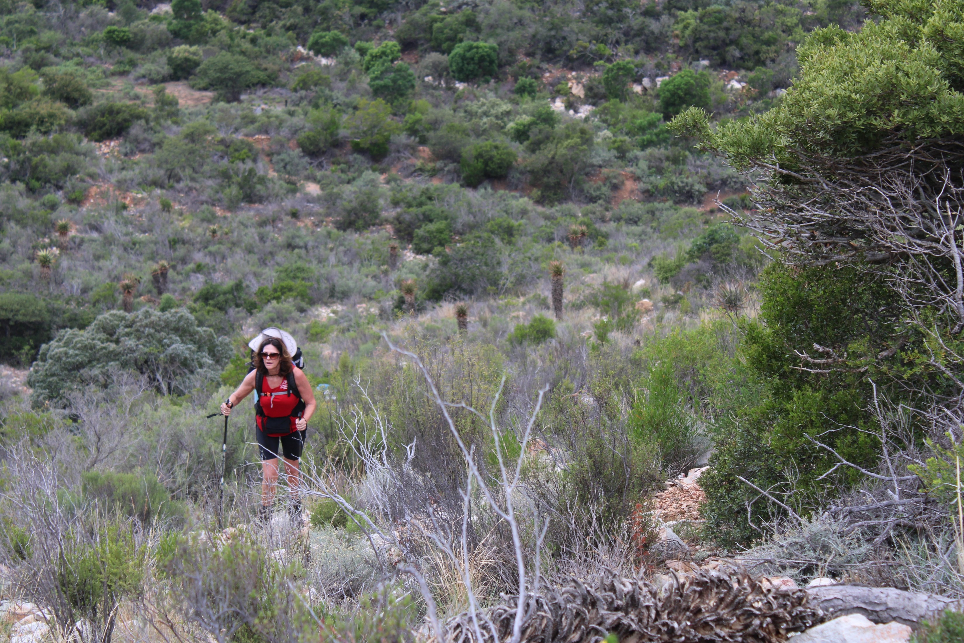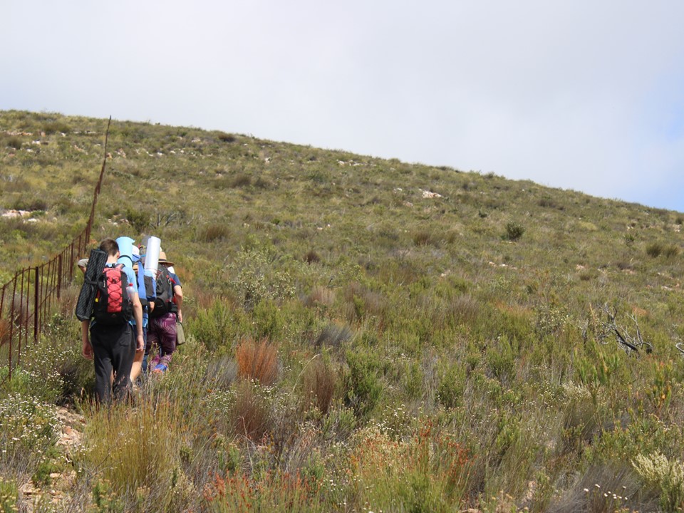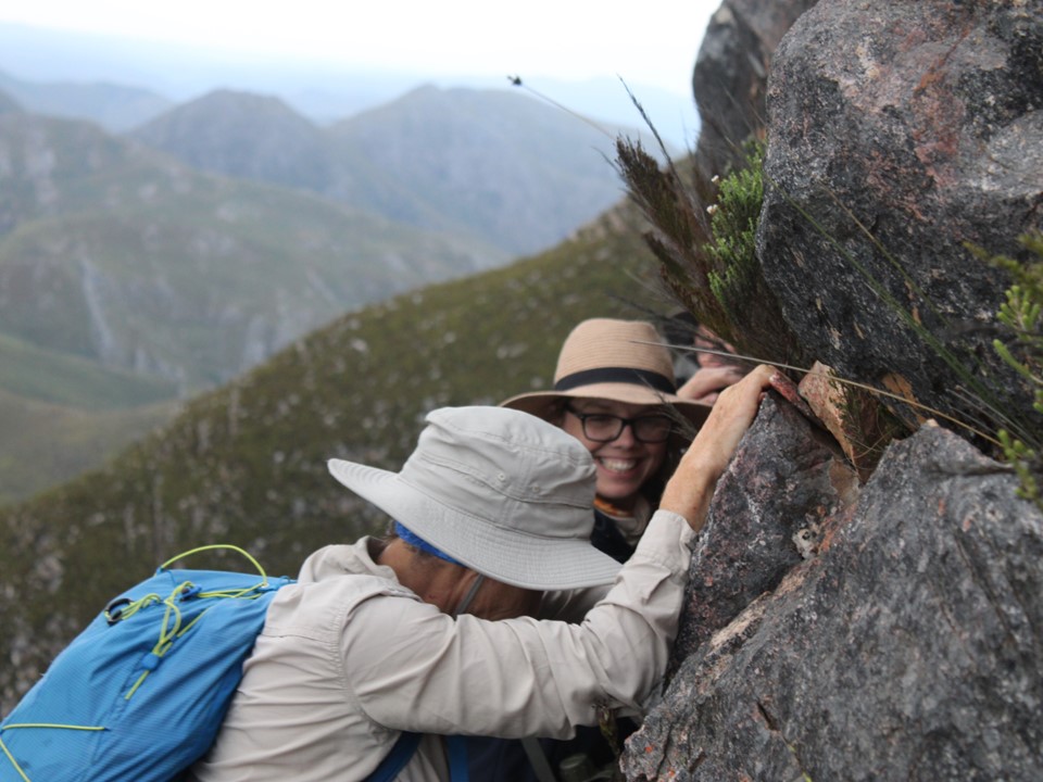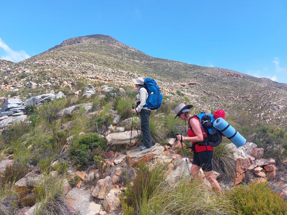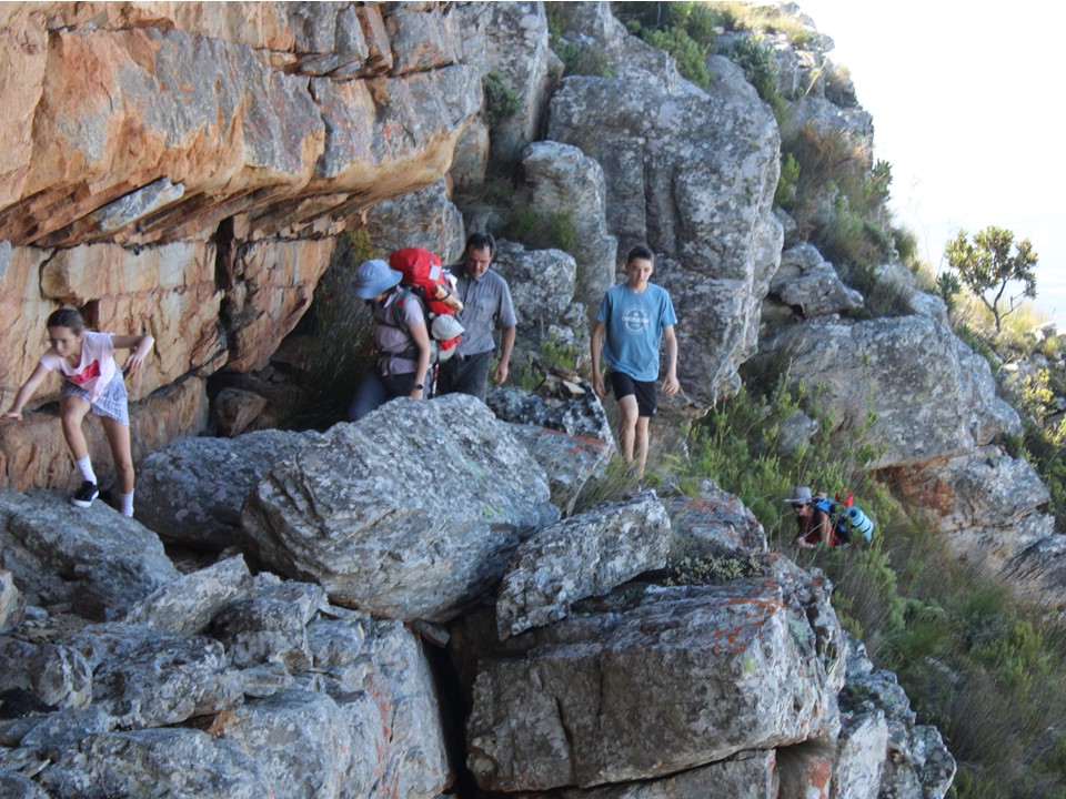 As we neared Tokoloshe Cave, the ground suddenly started getting more exposed. As is often the case in the Cape Fold Mountains, one has to walk on narrow exposed ledges where a fall could be serious. As Andrew would call it – the DFU Zone (Don’t Mess Up Zone).