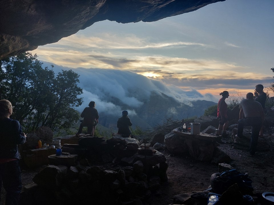 We watched the clouds as they rolled over the ridge. I remember learning about how warm moist coastal air and dry inland air don’t mix, which is the reason for the existence of the Karoo. This phenomenon was very clearly visible from the cave. These visuals explained high school geography better than the best teacher possibly could.