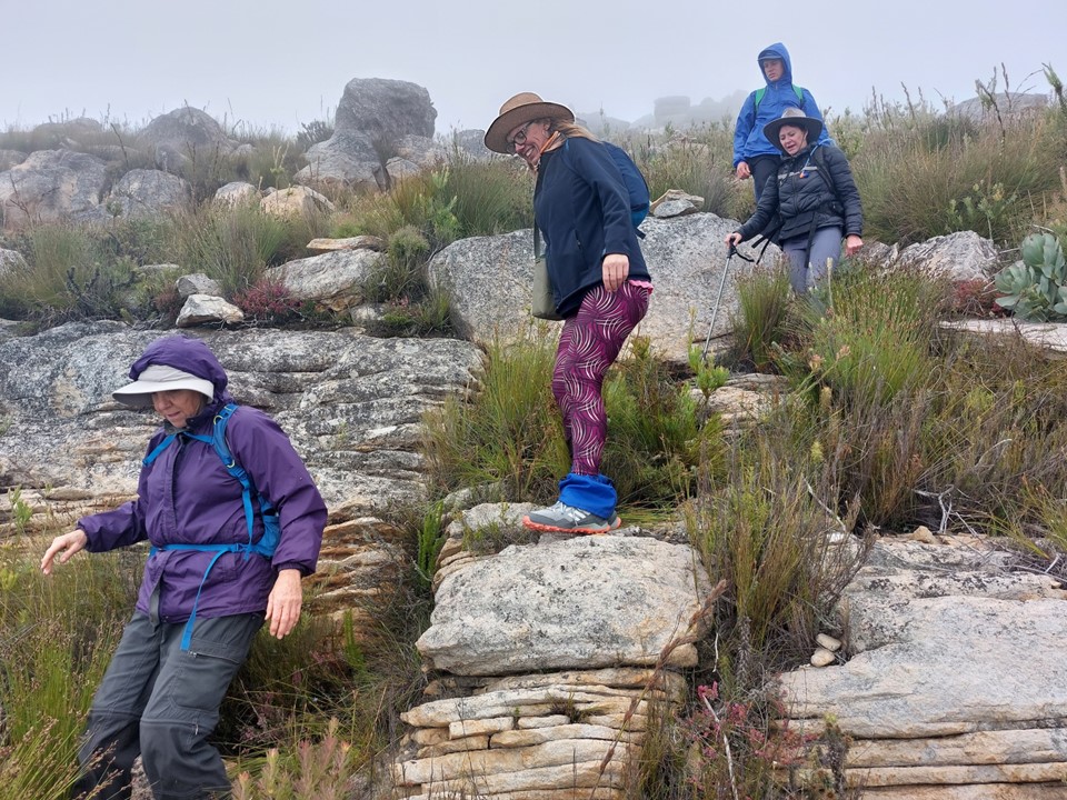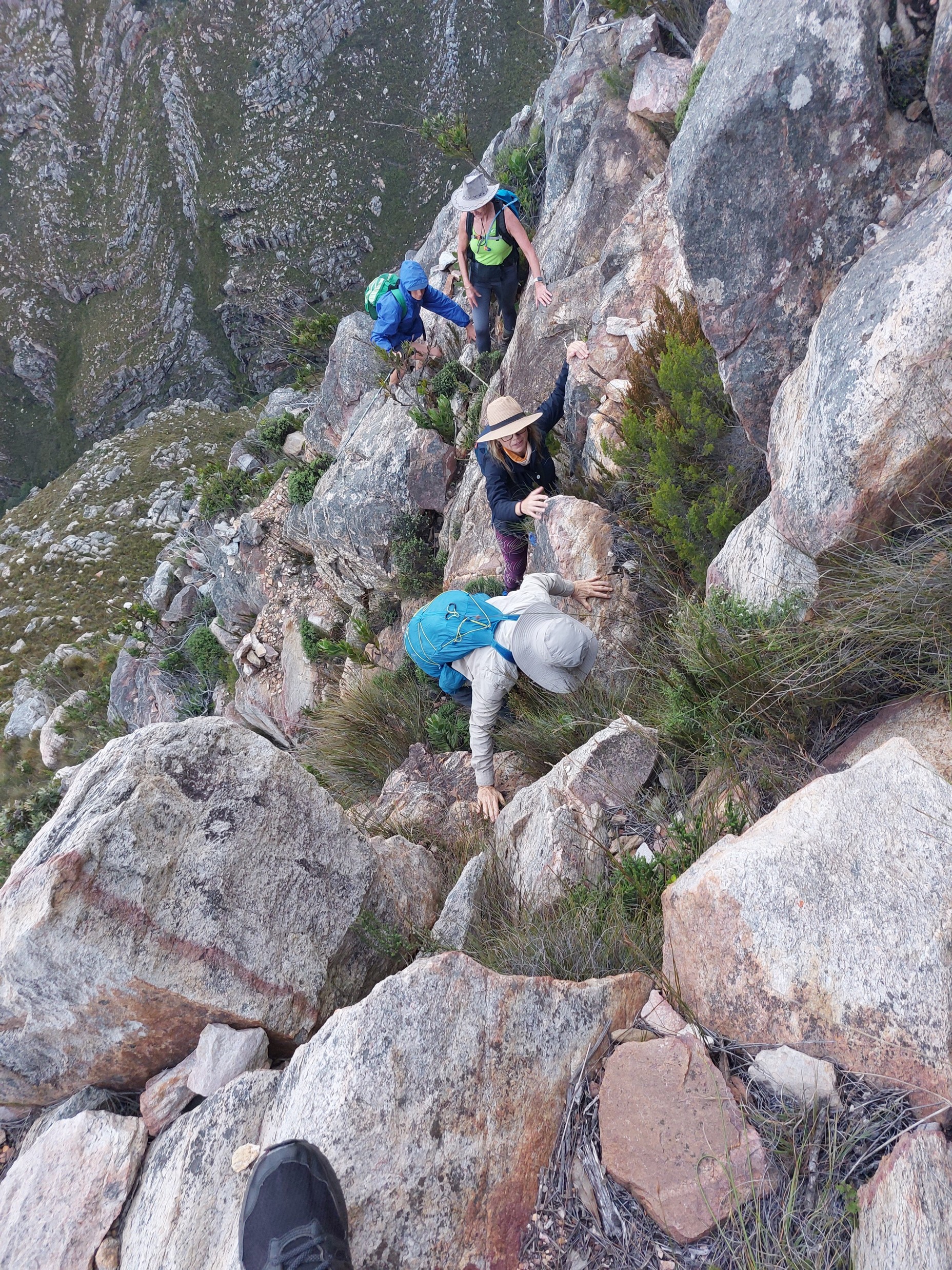 Then the mist started clearing just as we hit the top of the sketchy section. Lyndi and I agreed to turn back and head back up as well, while Gaye and Judy continued down.