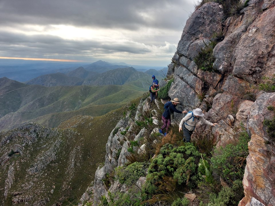 During this time I had kept my eye on the MCSA Eastern Province meet sheet due to the two remaining peaks I have in the province, Cockscomb and Groot Winterberg. Cockscomb is the 6th most prominent mountain in South Africa, with 1244m topographic prominence according to Peak Bagger, 1291m according to Peakvisor, and 1280m according to my list. The complication with this peak is that one has to cross multiple farms to access it – if you aren’t an MCSA member, it is practically impossible to gain access. Luckily for me, I am an MCSA member – but with almost no information available online, the best bet was to join an MCSA Eastern Section team. I would not recommend attempting this peak unless you are an experienced hiker with a good head for heights – there are plenty of tricky and dangerous spots. Navigation is also tricky. For those looking to arrange access outside of an MCSA organised group – you will need to chat to Eastern Province Section, there is a form you have to complete to apply for access, which requires sufficient advanced notice, details on the plans etc.