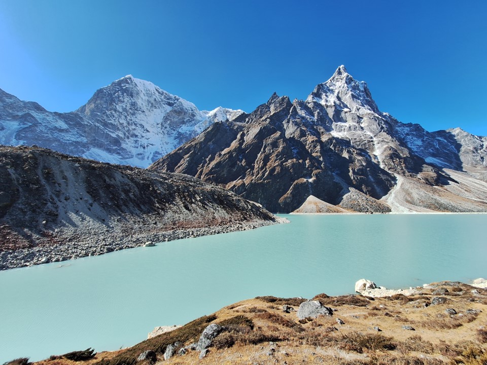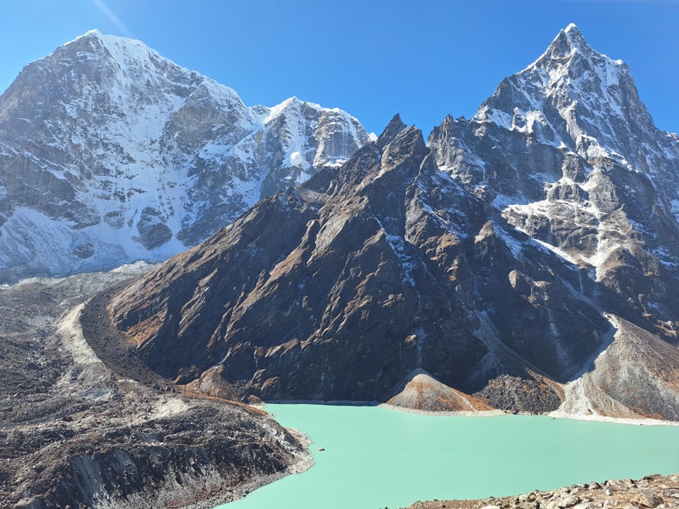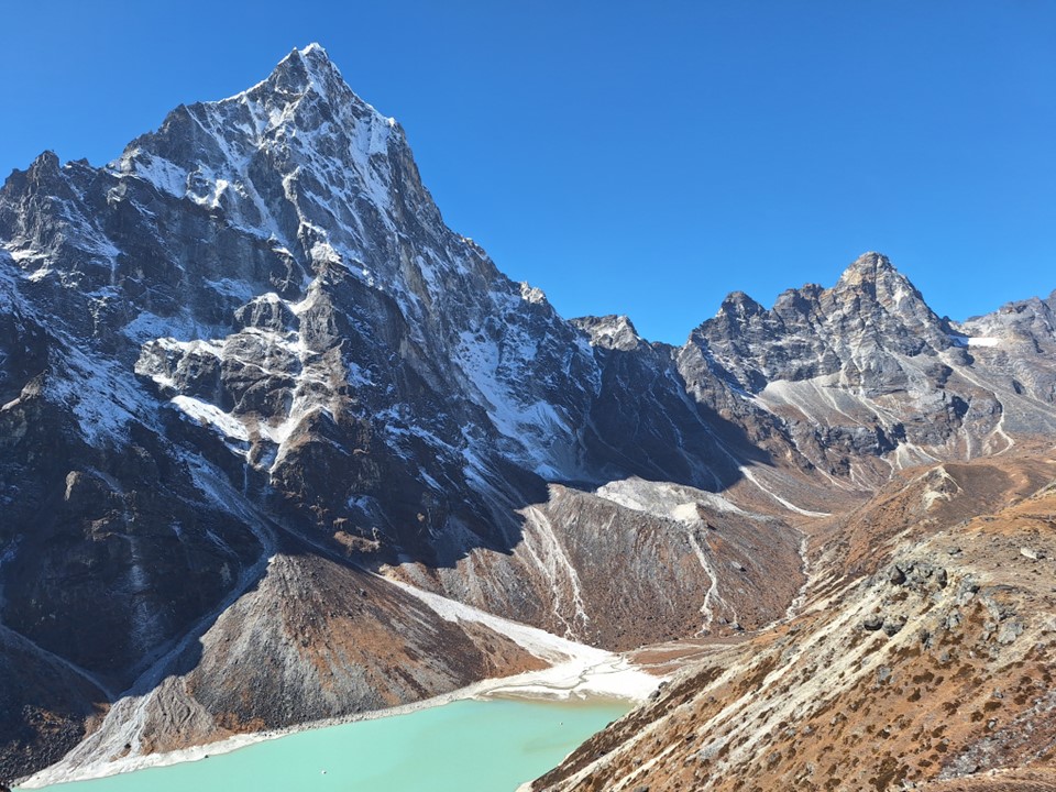 Pasang was aware of my opinions on Cholatse, and suggested we take a line rarely used by tourists – going to the lake below the mountain. Cholatse means Lake Pass Mountain – and the iconic turquoise lake at its base is part of what makes the perfect image when hiking past this mountain.