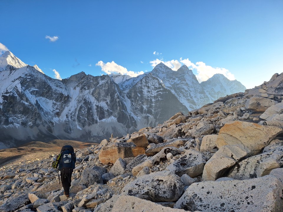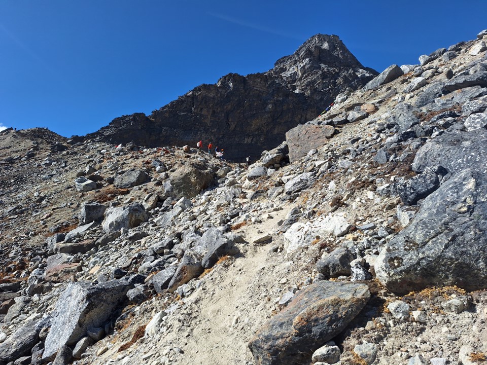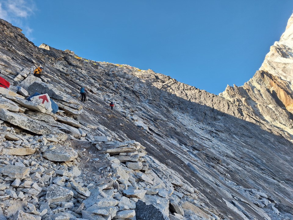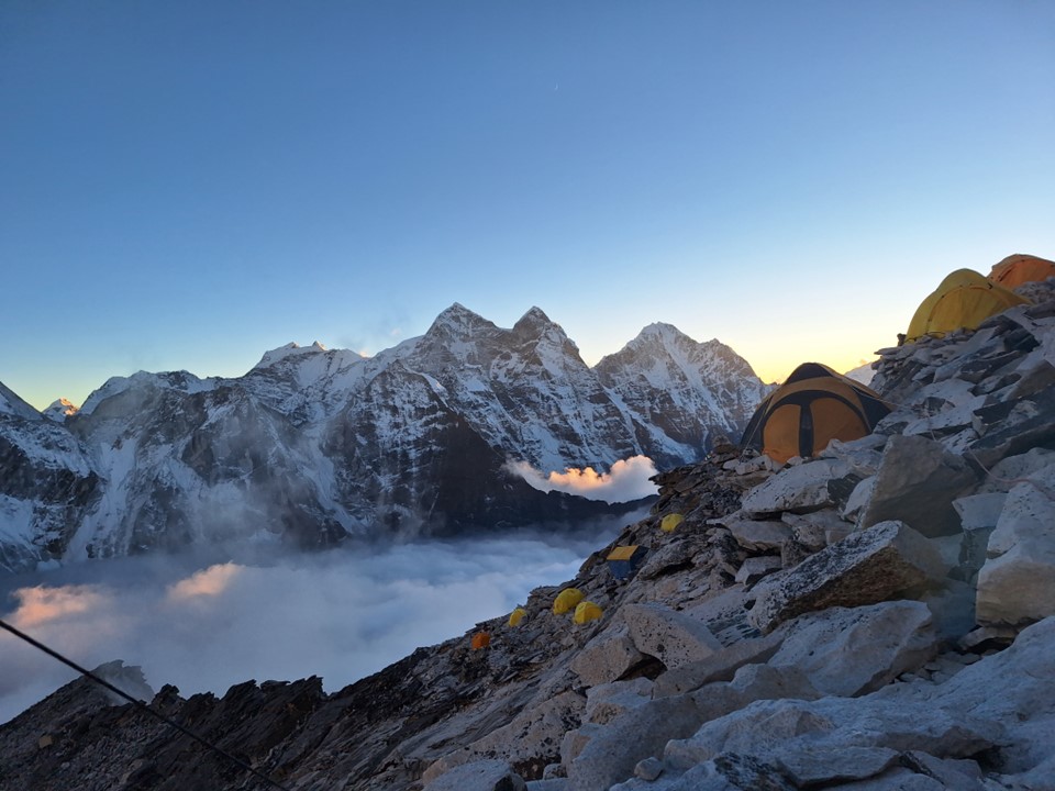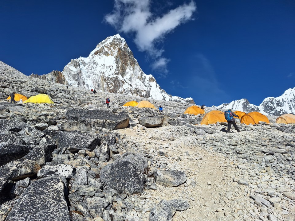 My state of mind can be summed up by how few photos I took. I was looking at how long we had till sunset and realised I was about to be on my own in the dark in a boulder field, and all my sleeping gear was with the porter. If I didn’t manage to push, I was in real danger. I could see Camp One now, but it was much higher than I had thought.