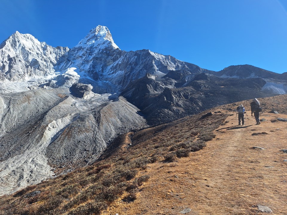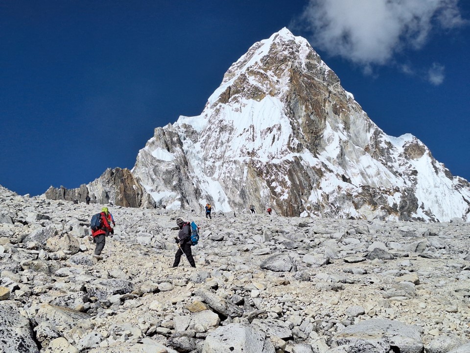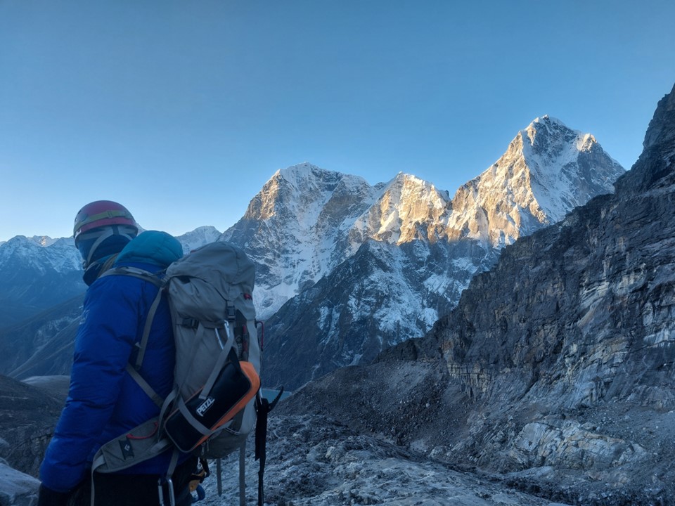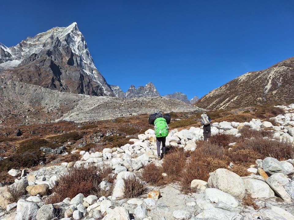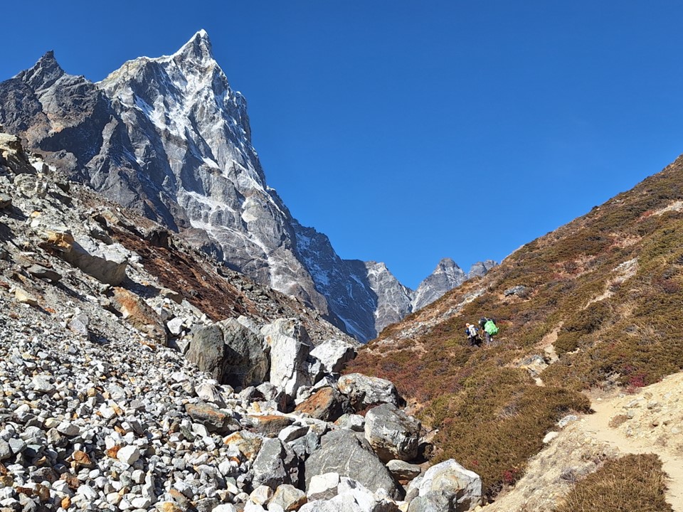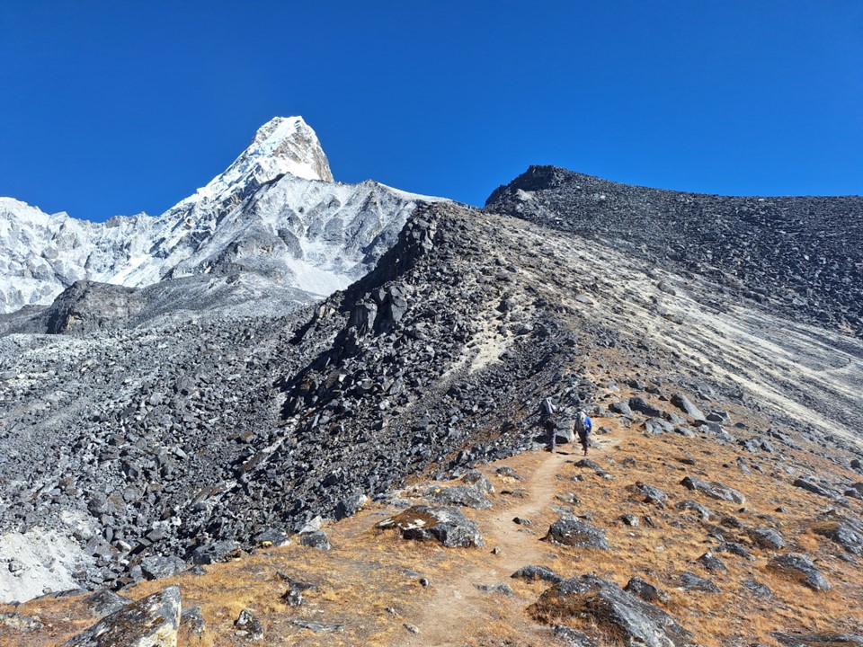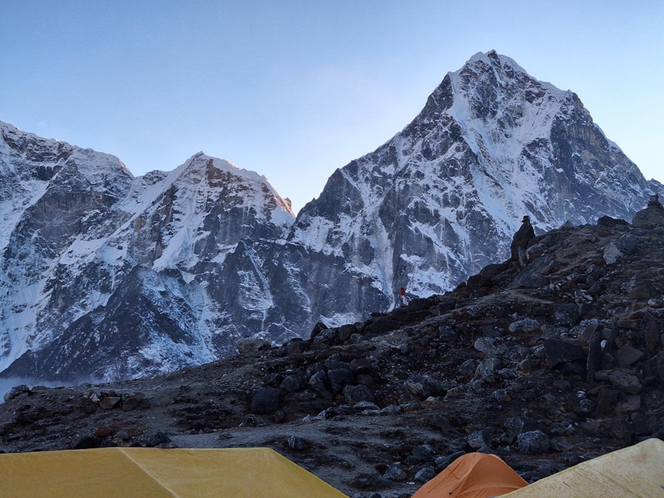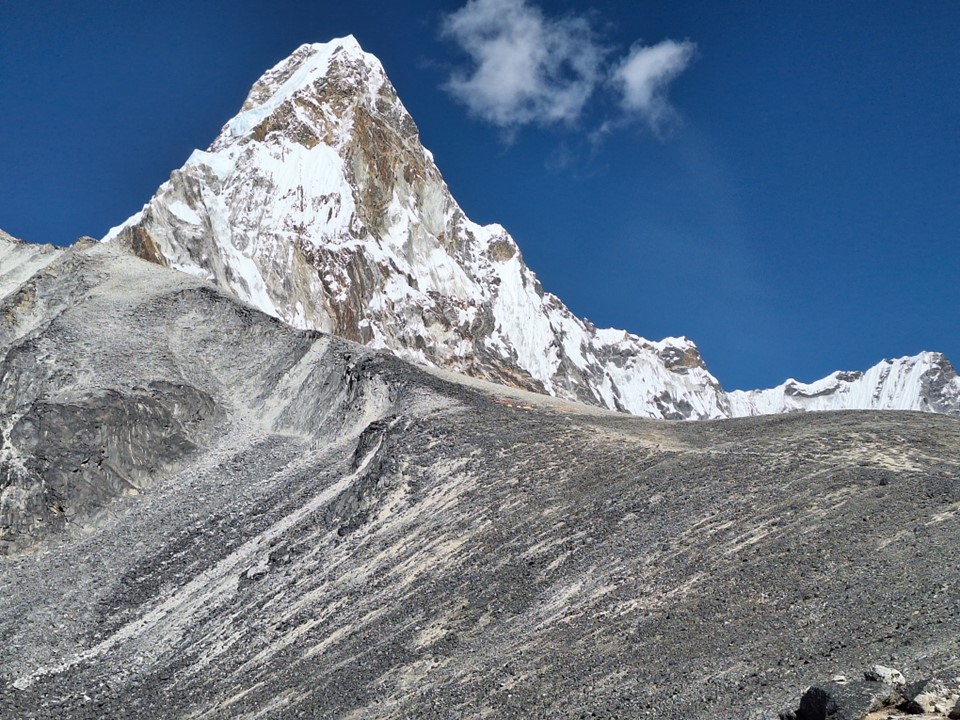 Soon we reached the main trail and Lobuche was directly in front of us. The following day would be my first day trying to climb a peak above 6000m – and even if I don’t consider Lobuche to be an independent mountain, only having 279m topographic prominence relative to a 6119m summit (4.5%, well under the required 7% under the Himalayan definition), it would still be the highest peak I’ve ever attempted.