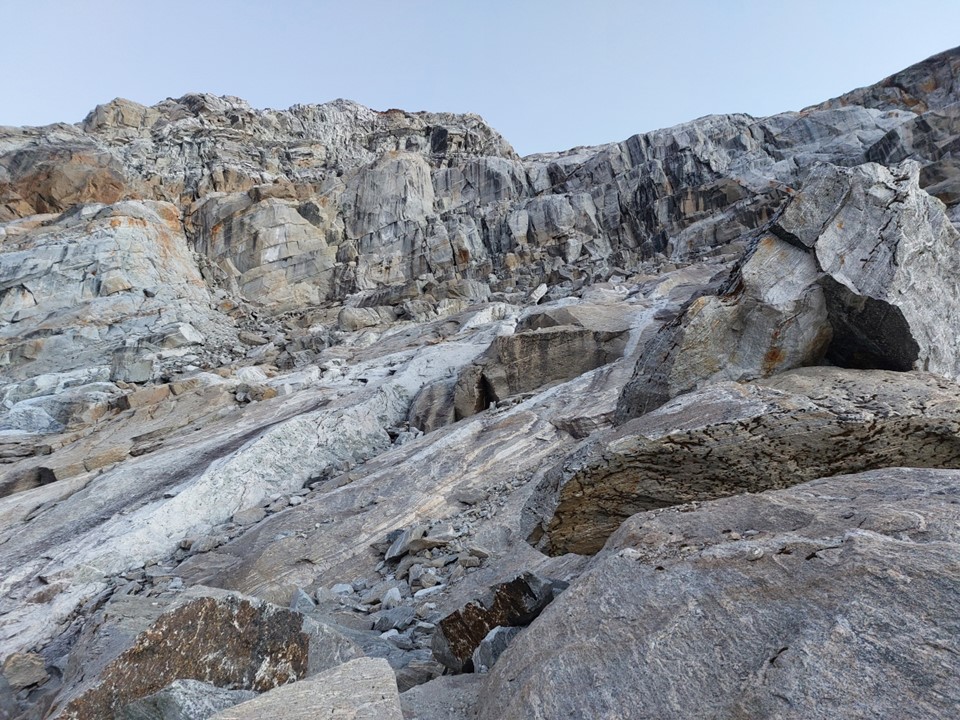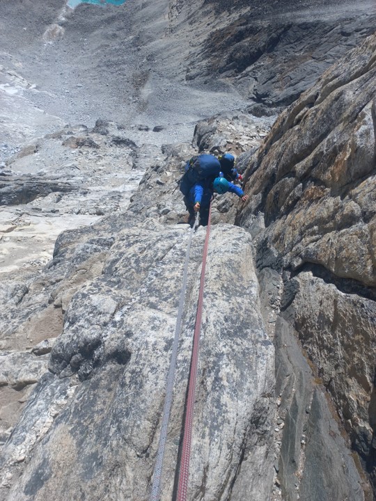 For the descent, I decided to abseil anything I could. I knew this is easier and safer when one doesn’t feel well and needs to get down quickly. Even on some of the less-flat traverses, I opted to abseil.
