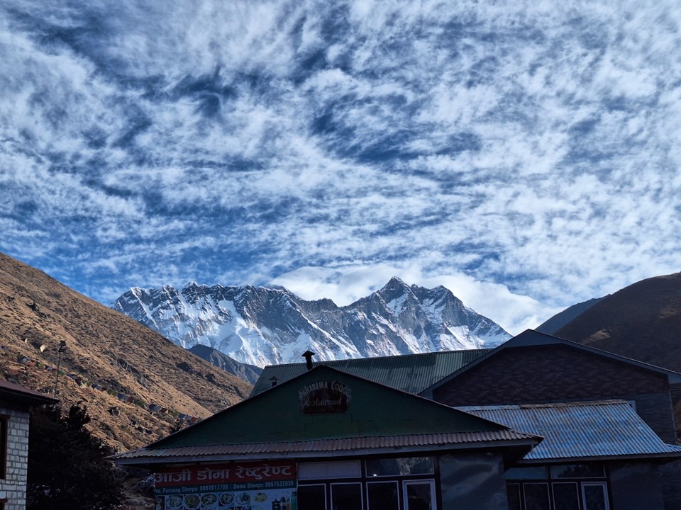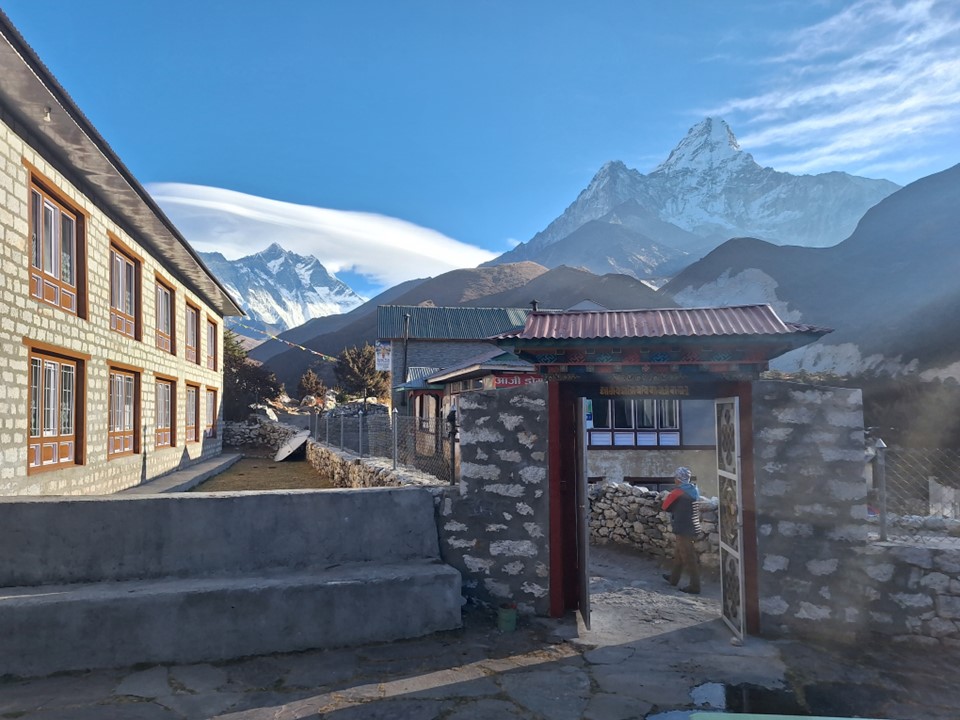 We stopped for lunch in Pheriche – where I had a cup of mint tea and ginger tea, hoping they’d do something to the flu I had picked up. I also had a plate of momos and sat as far away from everyone as possible. Least I can do is avoid making anyone else sick.