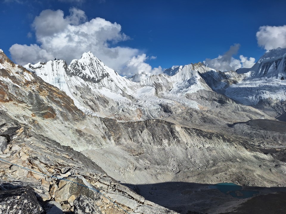 Anyway – back to the mountain. We dropped down a bit till we found a nice spot to sit. We had turned back at 5965m, which is the highest elevation I’ve ever reached – beating the summit of Kilimanjaro (5895m) in March 2015. At roughly 5950m, we took a break for me to attempt my personal record for the highest elevation I have attempted to rap at, and highest elevation I have whistled the SA National Anthem at.
