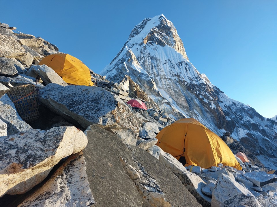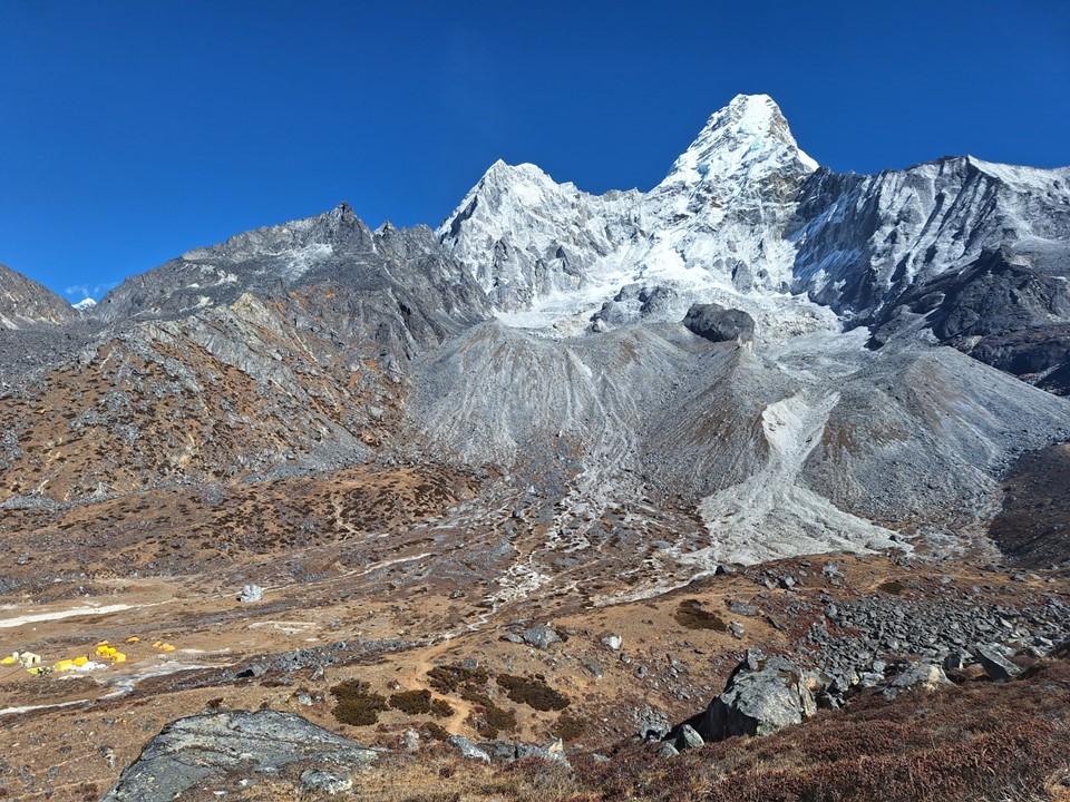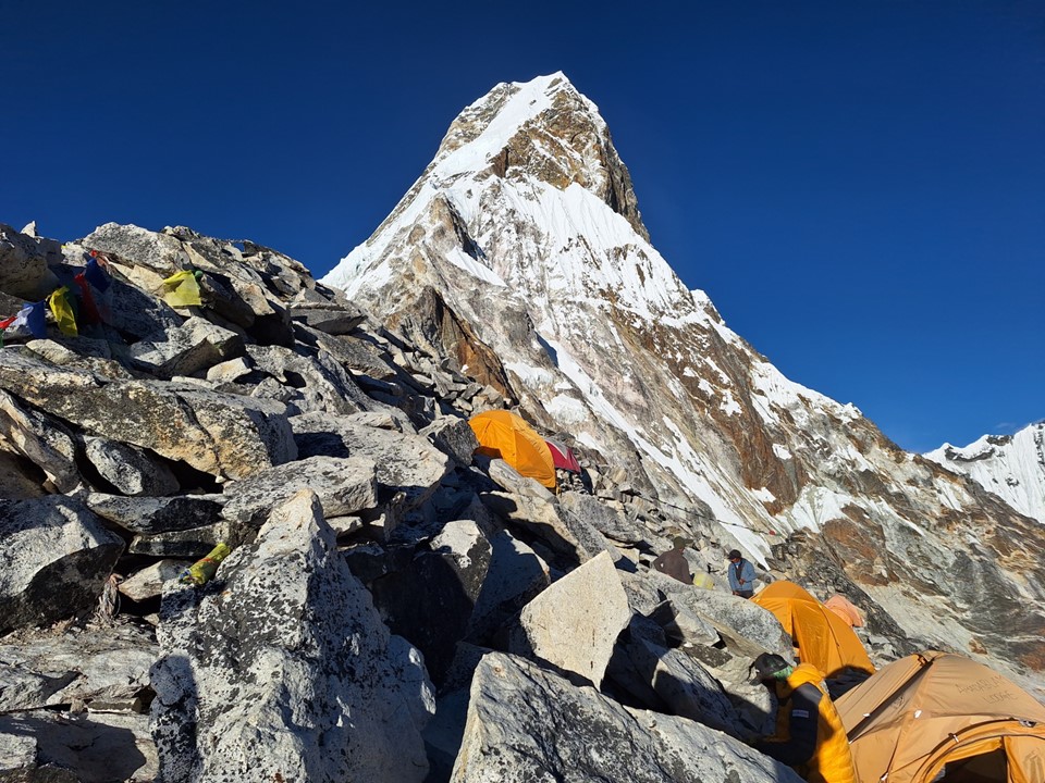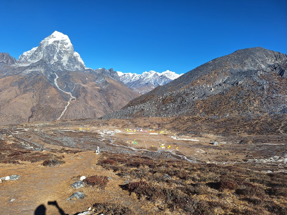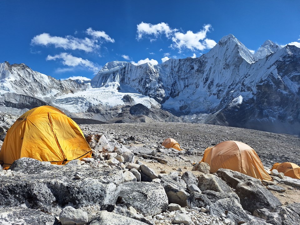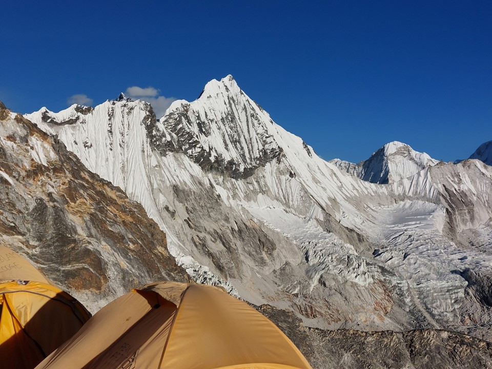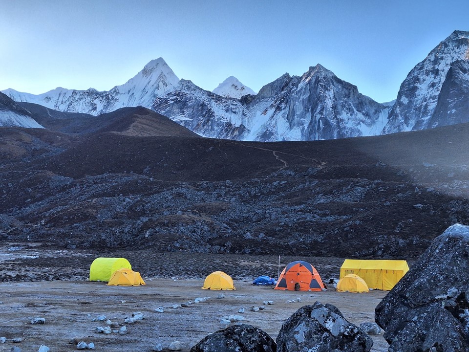 During this time I would get up and get some tea or water from the food tent, or when the lighting was good, get out my big heavy DSLR to get some photos of the mountains in the region. There are twelve different mountains (7% prominence definition) above 6000m visible from basecamp, although not as impressive as the 30+ visible from camp one. Khumbi Yul Lha (a 5000er that is sacred to the locals) grew on me during this period – as I write this, there is an A2 canvas print of it taken from basecamp on my wall at home.