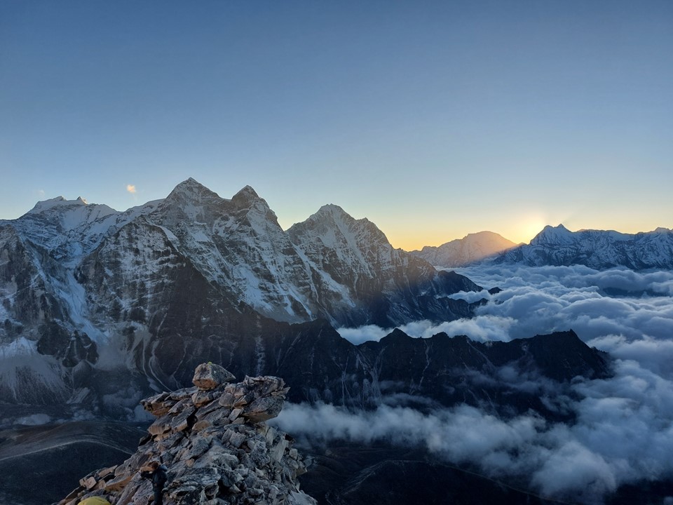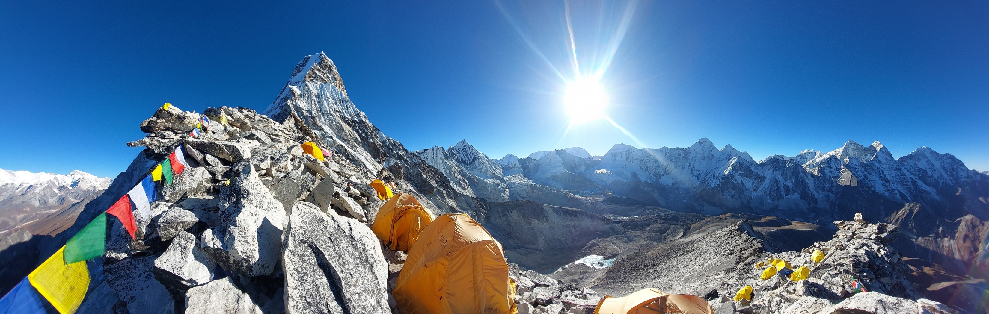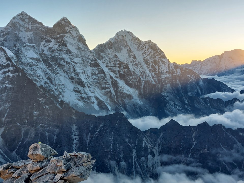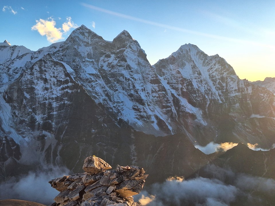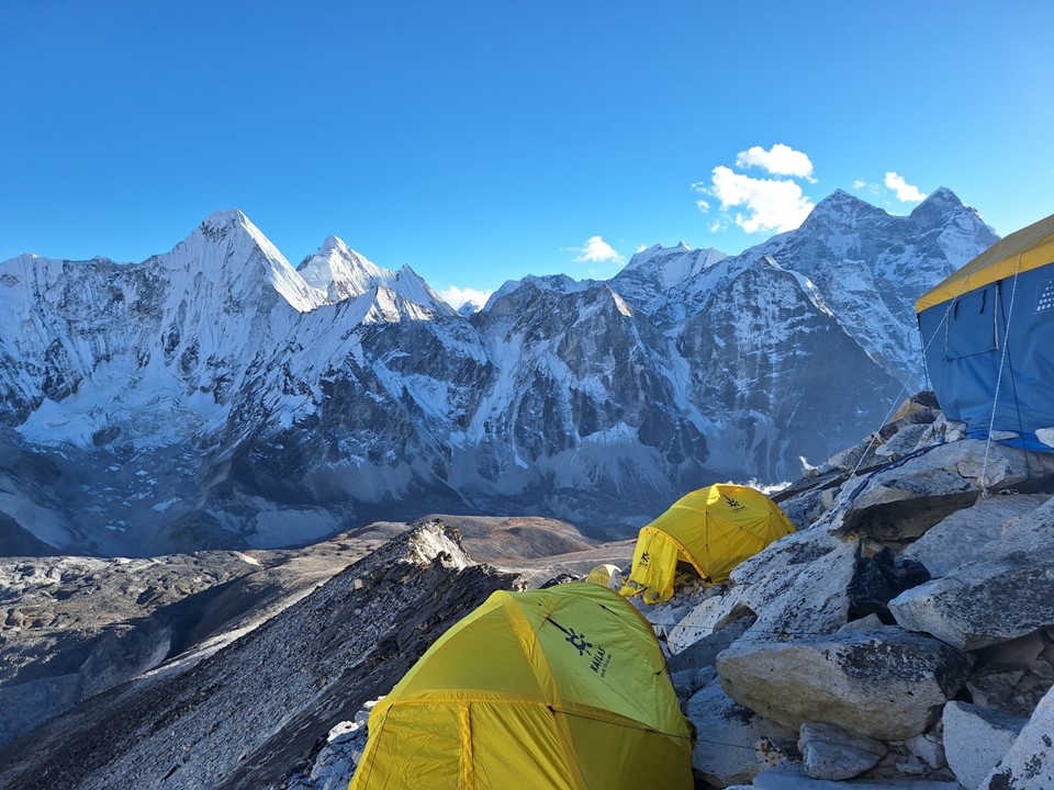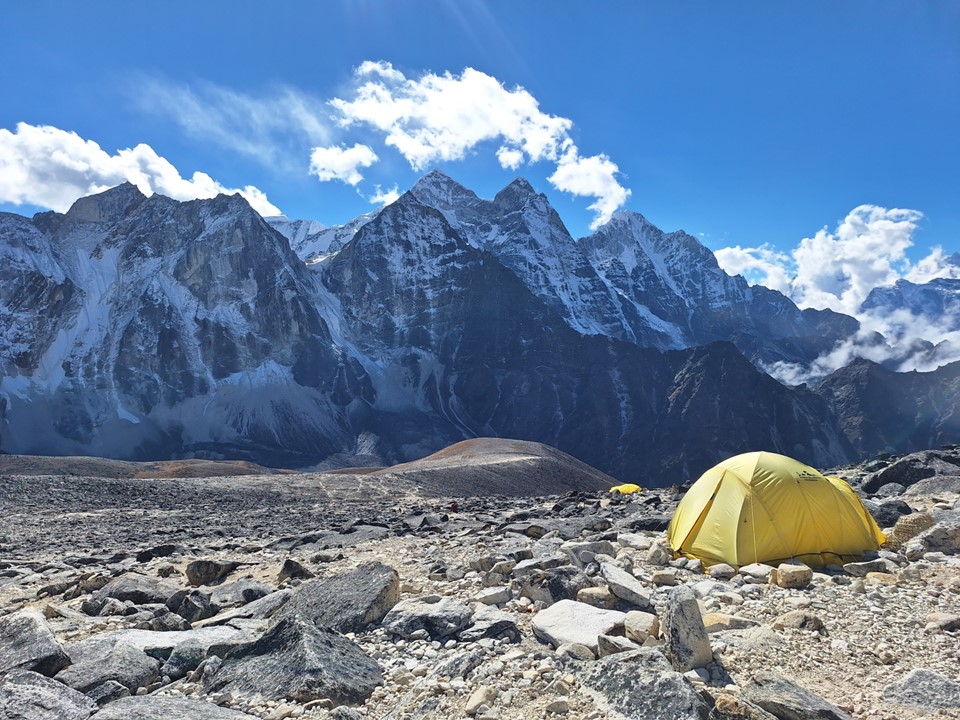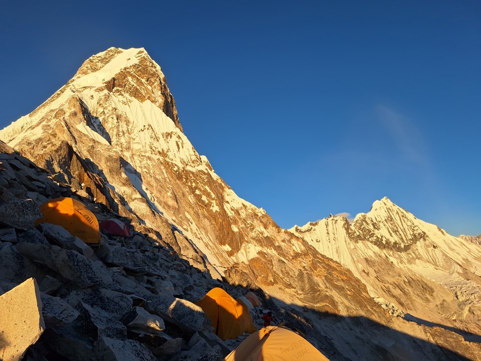 During this time I would get up and get some tea or water from the food tent, or when the lighting was good, get out my big heavy DSLR to get some photos of the mountains in the region. There are twelve different mountains (7% prominence definition) above 6000m visible from basecamp, although not as impressive as the 30+ visible from camp one. Khumbi Yul Lha (a 5000er that is sacred to the locals) grew on me during this period – as I write this, there is an A2 canvas print of it taken from basecamp on my wall at home.
