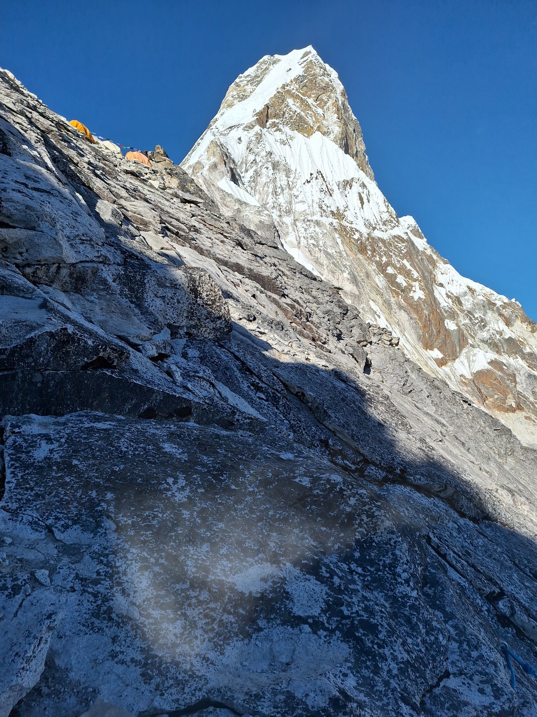 We took a good long break at Advanced Basecamp. I had some more to eat, and took some photos. I am absolutely blown away by the scenes at ABC. Pasang had mentioned that he has started advertising tours where he takes people to spend a night at ABC as part of the EBC route. ABC on Ama Dablam is far more spectacular than EBC – so this could potentially ruin their expectations for higher up, but if anyone is looking to do EBC and has the time for this detour, ask your guide if they can include a night at ABC on Ama Dablam – it is well worth the effort.