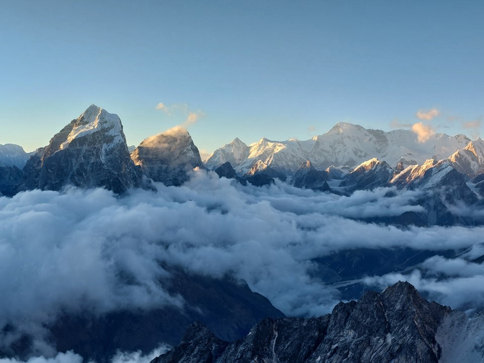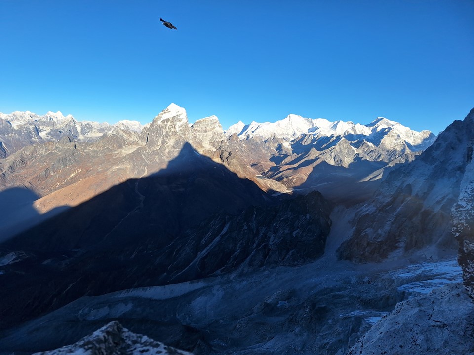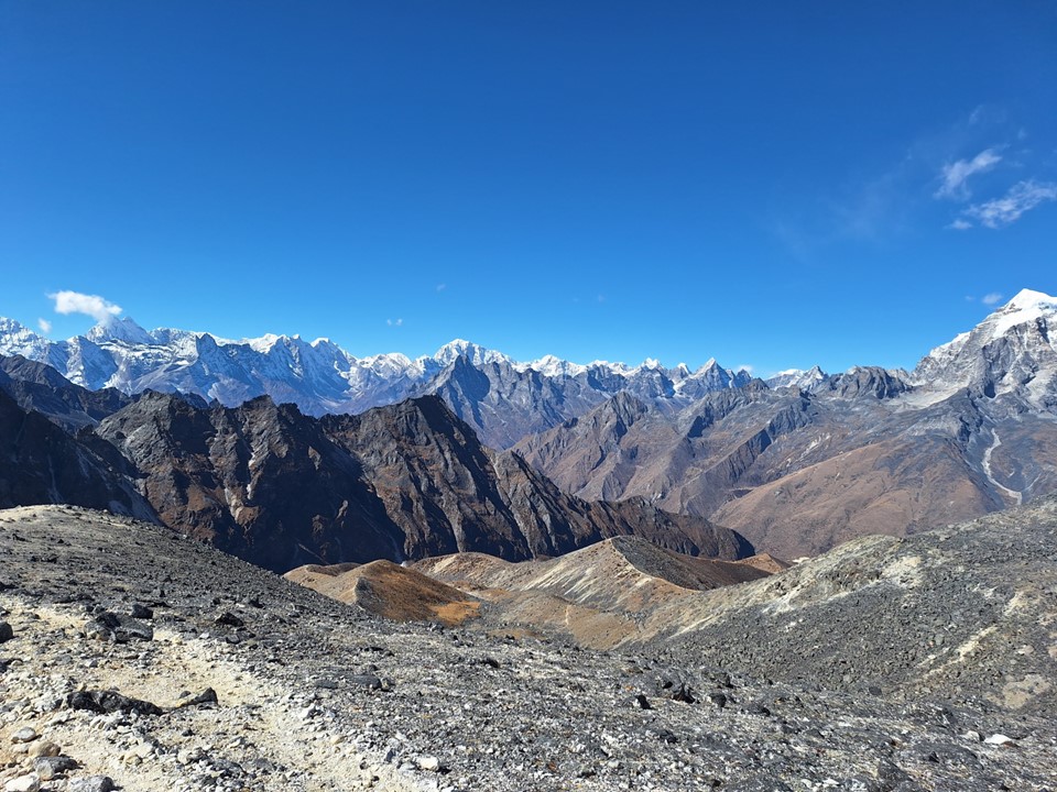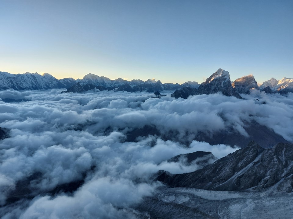 As we climbed the first ridge, it was notable how empty basecamp had become. Few attempt the mountain so late in the season, which was in no small part why I picked late November. In the photo above, you can see our cluster of tents on the left – most of the tents had been taken down as I was the only tourist left in the group.