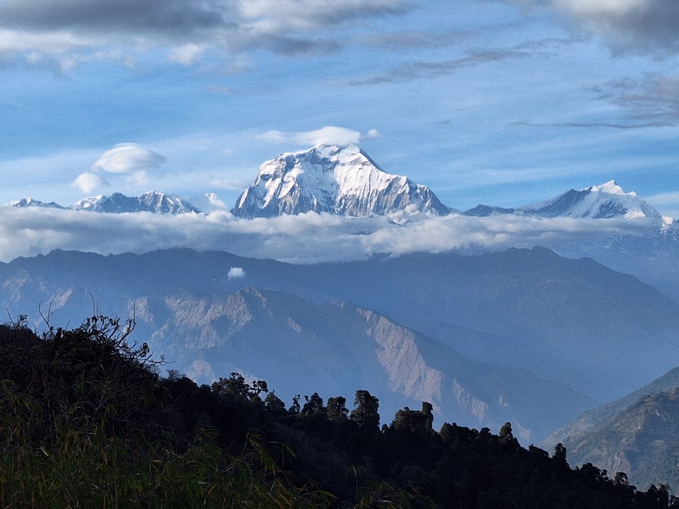 We stopped for lunch at a tea house on the way up, and made it to Ghodephani in pretty good time. Being late in the season, the tea houses lower down in the town were closed. I went with a tea house at the saddle overlooking Dhaulagiri – I still find it crazy that you can stay in a tea house with a view of both the 7th and 10th highest mountains and it only costs NR500 (about R70 or US$4).