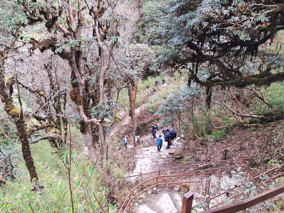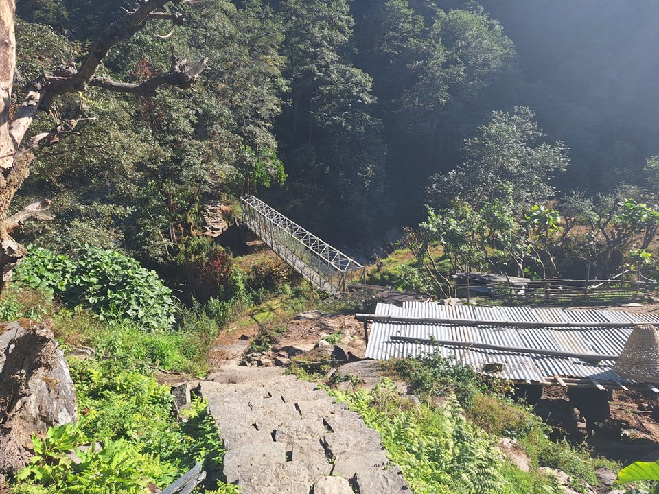 What followed was a long steep downhill to the river. Some children who live on the slopes were making their way up the hill to the school in Gundruk – while it wasn’t uphill both ways, they can most certainly tell their future hypothetical children about the difficult hill they had to climb each day to go to school.