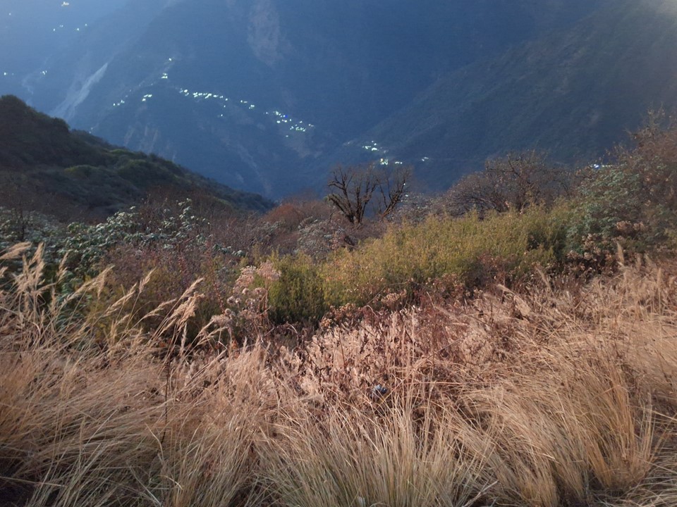 The lights from the tea houses down in the valley on the Annapurna Basecamp trek gave an idea of how popular that trek actually is.
