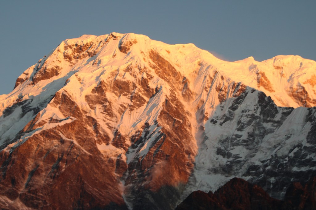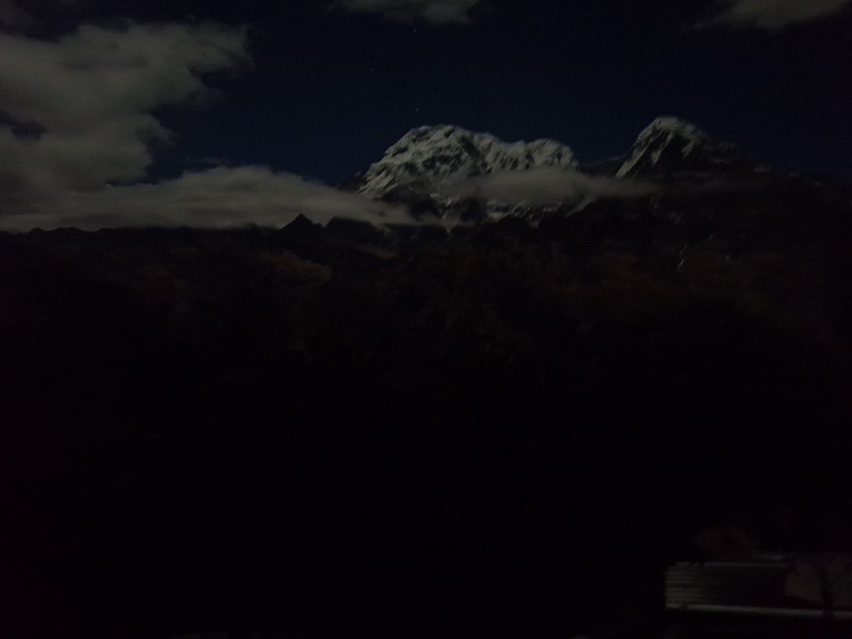 I tried to get a photo of the peaks in the dark to see what my camera could do, but this photo of Annapurna South is the best I could get. For those who haven’t seen mountains by moonlight – I highly recommend adding it to your bucket list.