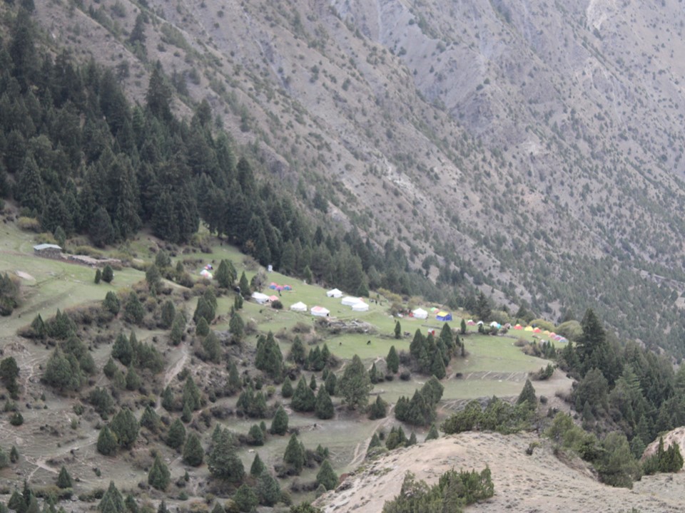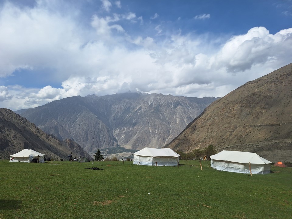 The camp is in a beautiful location on the slopes of the mountain, with a great view across the Nagar Valley.