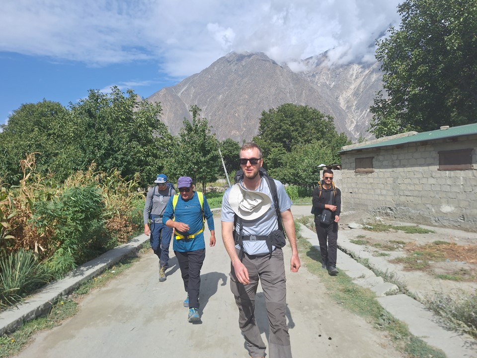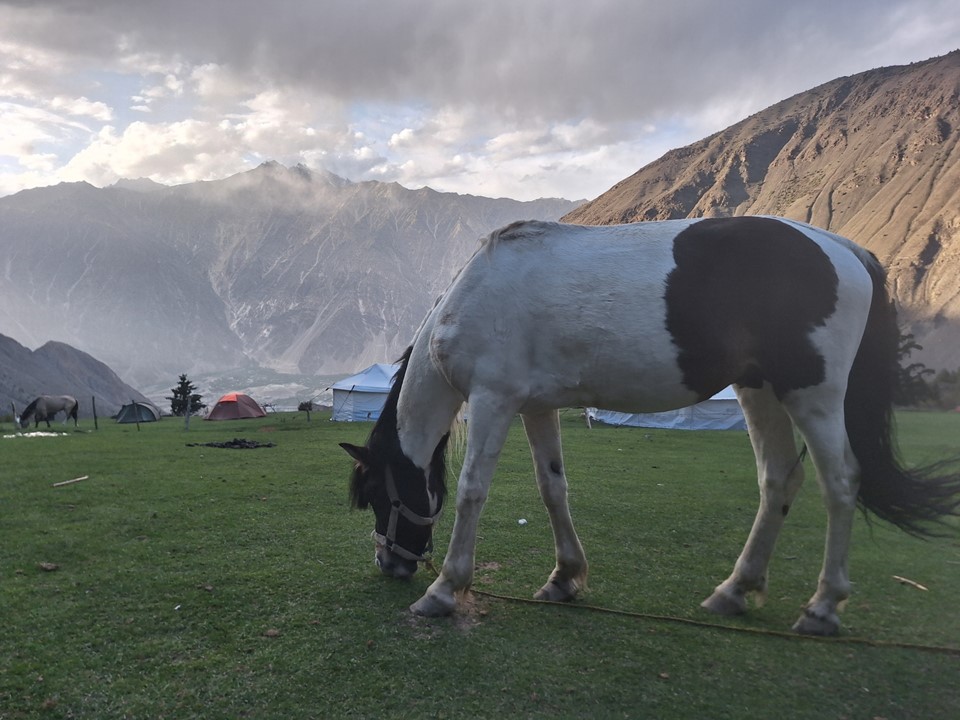 We set off from Minapin early the next morning. Ahsan, a young guide starting out his career with Hunza Guides, joined us for this hike. Unlike Nanga Parbat, where we’d be staying in chalets, this hike required tents and sleeping bags. I insisted on carrying my own sleeping bag, although my tent went up with the horse, so I was still arguably cheating.
