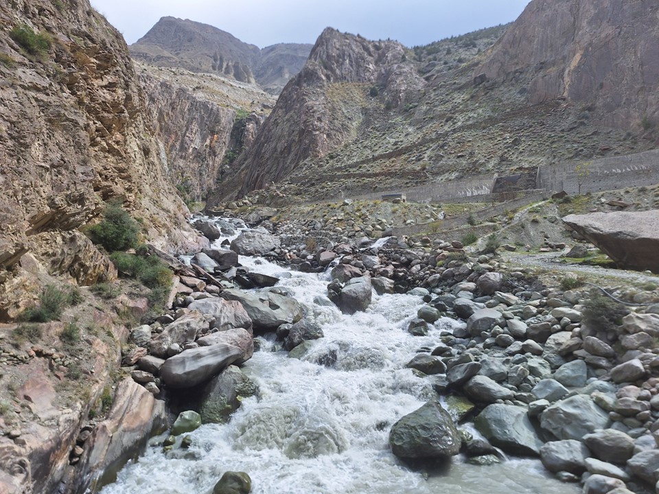 The weather wasn’t cooperating, and as we reached the Nagar Valley and stopped at the river directly below Rakaposhi’s summit, we could barely see anything. It began raining soon after we stopped here. Such is life! On the bright side – I managed to get my maps of the region at the shop by this spot.