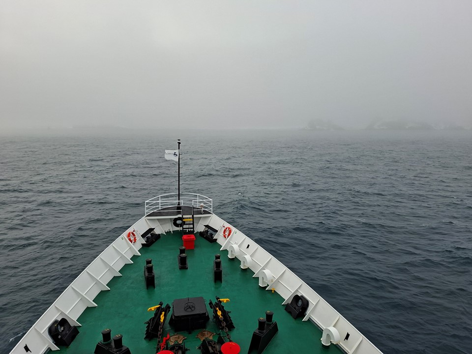 Suddenly, through the mist, some icy rock appeared. Naturally, I said “land ho” – to the amusement of no one.