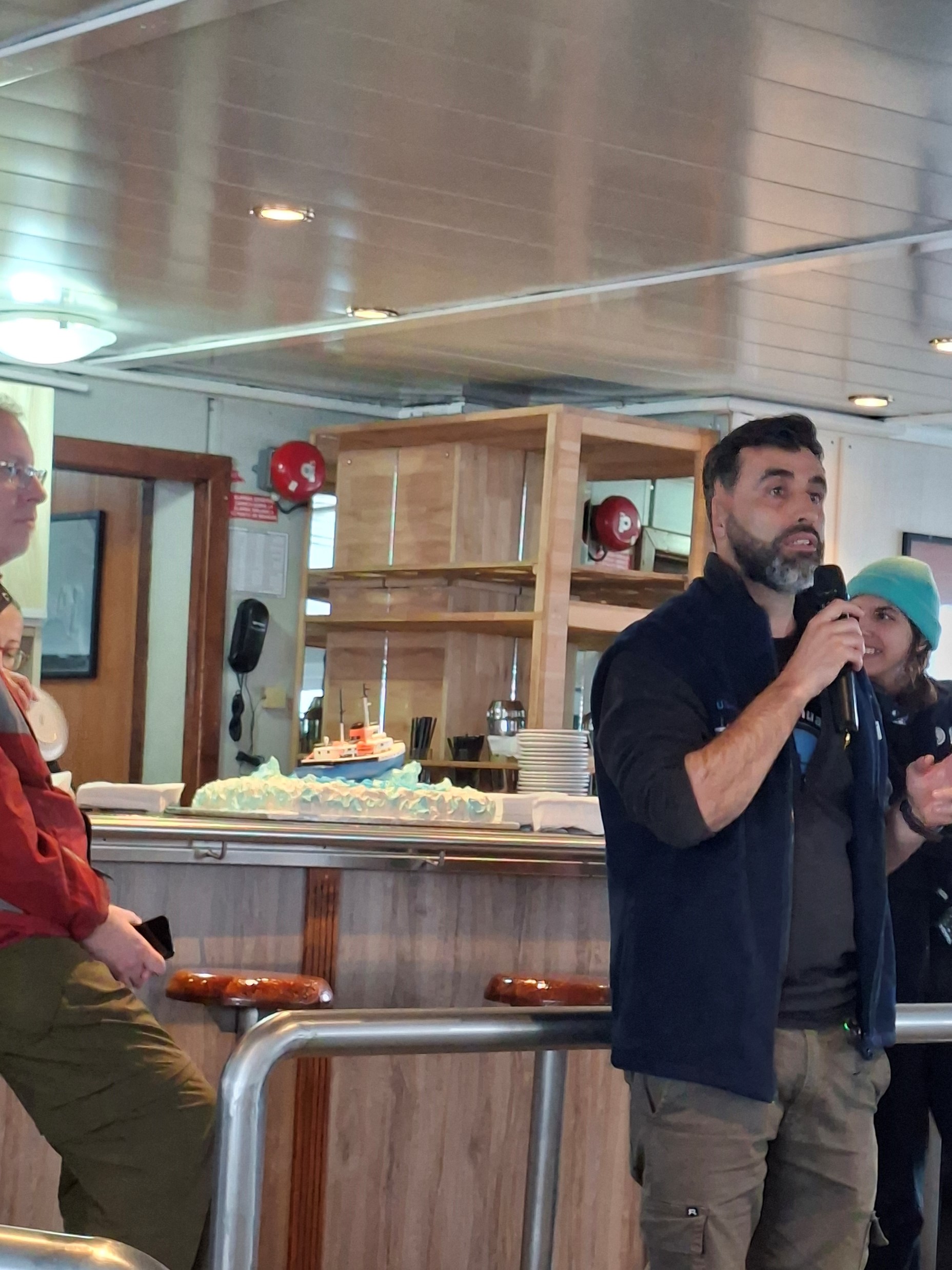 There was a welcome ceremony with cake and champagne/orange juice, where we were introduced to the team, told how everything works, and then did a lifeboat drill. At the end of this, we were informed that there is a substantial storm on the Drake Passage right now, and we would not be able to commence our journey till 6am the following morning.
